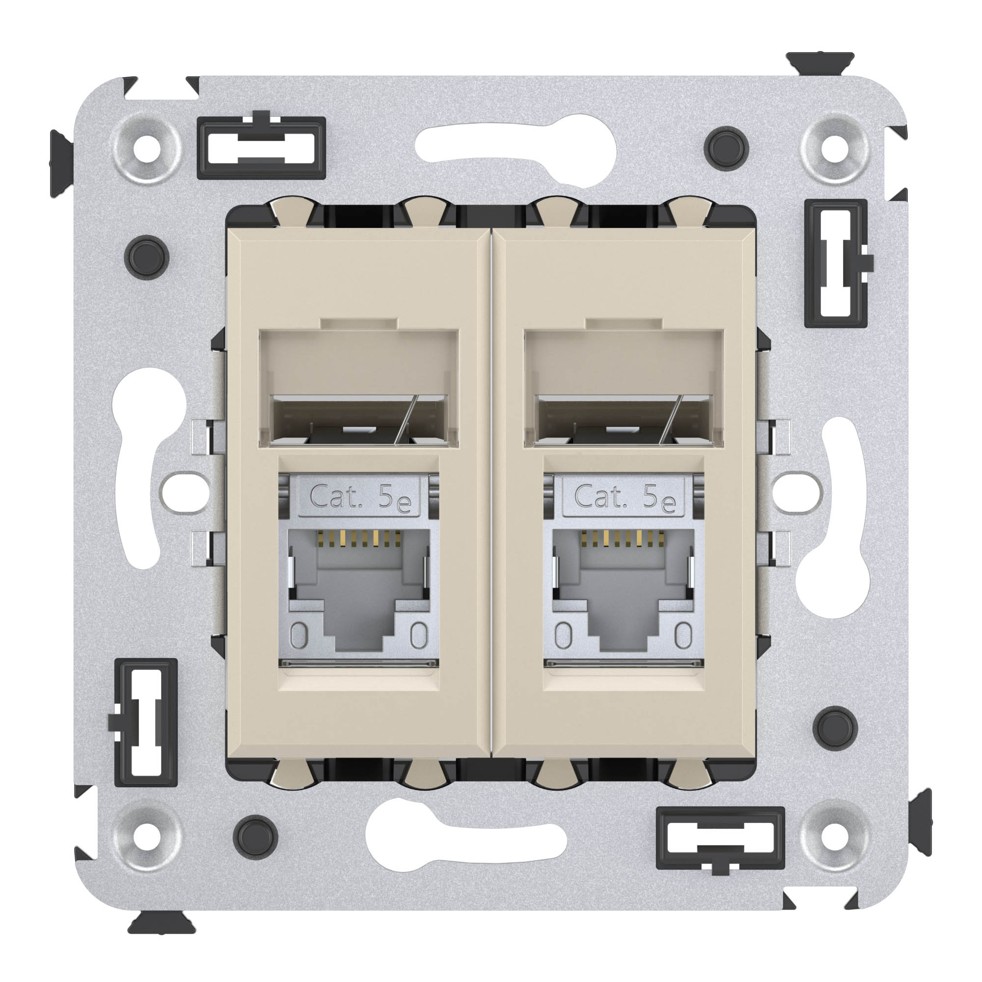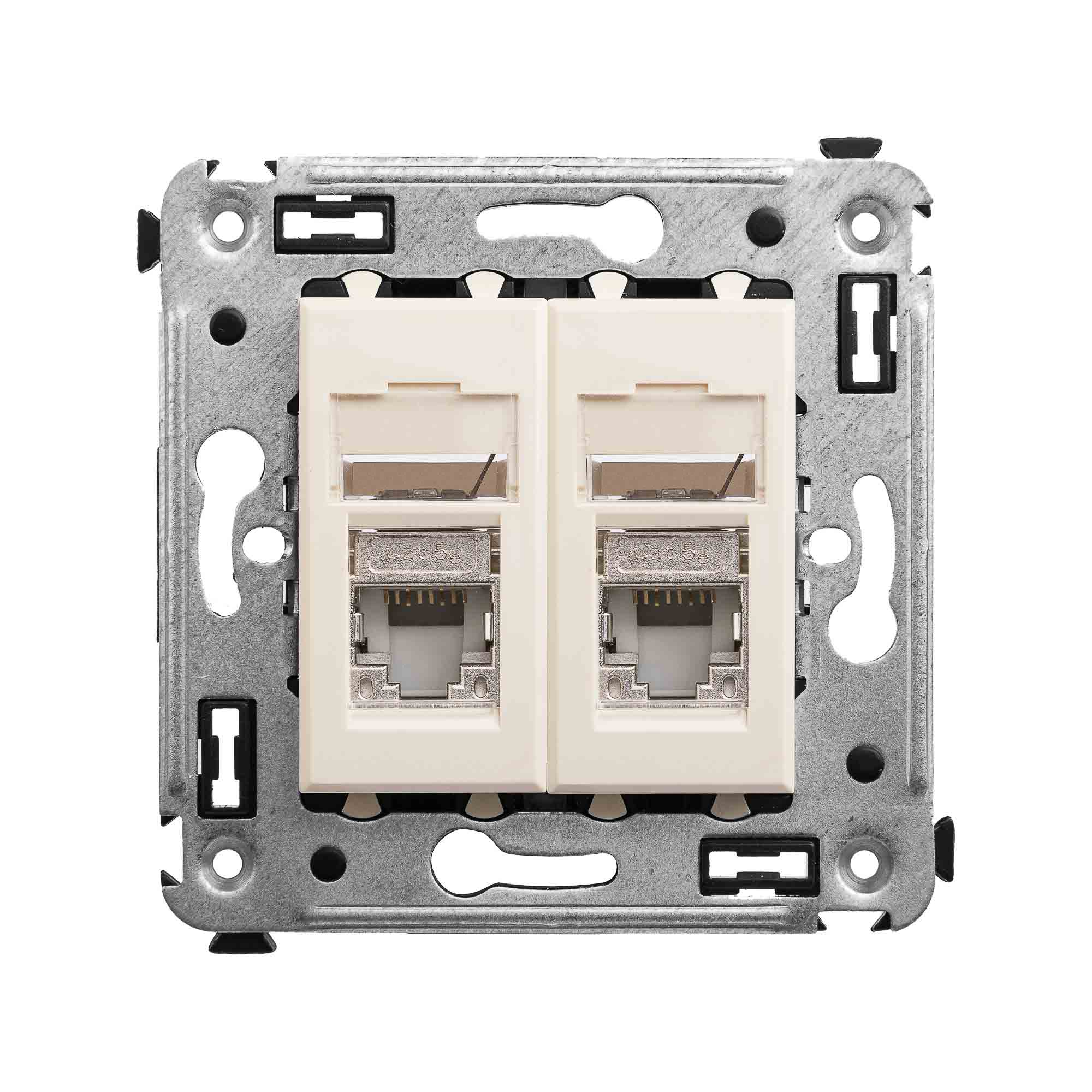 Компьютерная розетка двойная используется для подключения телефонных/компьютерных кабелей и подключения патч-панелей. Компьютерная розетка предназначена для скрытого монтажа в стену. Розетка RJ-45 категории 5e – это наиболее популярная на сегодняшний день модель, обеспечивающая высокую скорость передачи данных (до 1000 Мбит/с). Материал – металл, пластик. Пластиковые части изделия выполнены в спокойном пастельном цвете "Ванильная дымка", сочетающемся со светлыми тонами и насыщенными теплыми оттенками.
