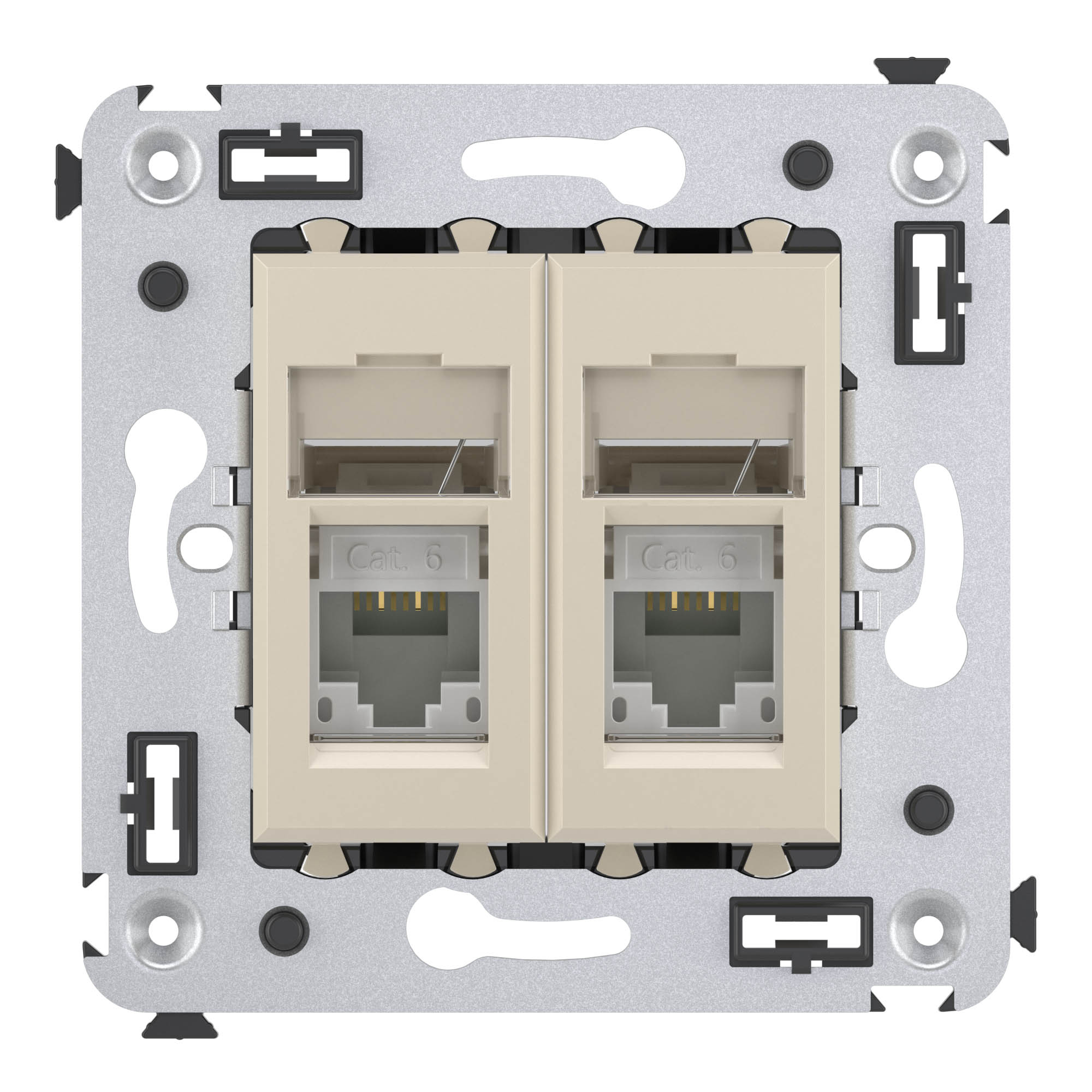 Компьютерная розетка двойная используется для подключения компьютерной техники и соединения с патч-панелью. Компьютерная розетка предназначена для скрытого монтажа в стену. Розетка RJ-45 категории 6 может использоваться для организации сетей с частотой до 250 МГц и передавать данные на большие расстояния. Кабель этой категории имеет повышенную защиту от помех. Материал розетки – металл, термопласт. Пластиковые части изделия выполнены в цвете "Ванильная дымка". Это теплый, уютный оттенок бежевого. Для декоративного оформления может быть подобрана рамка "в цвет" или же контрастного оттенка. Лучше всего изделие сочетается со светлыми и пастельными оттенками.