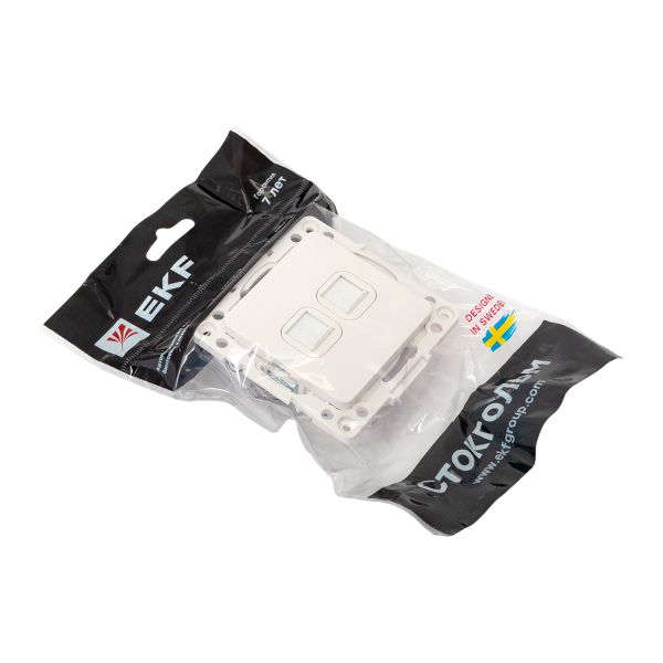 Розетка двухместная RJ45 EKF серии Стокгольм станет отличным решением для стильного помещения при подключении устройств к сети Интернет. Выполнена из поликарбоната, устойчивого к ультрафиолетовому излучению. Изделие необходимо дополнить рамкой.