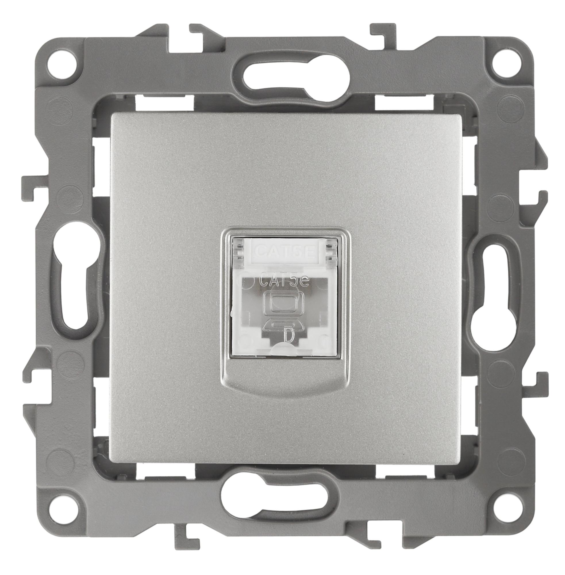 Розетка интернет RJ45 серии Эра 12 скрытой установки механизм цвет алюминий 12-3107-03. Сделана из поликарбоната. Монтаж в подрозетник производится и на лапки, и на винты. Рамки приобретаются отдельно. Рамки Эра 12: 1 пост 12-5001-хх, 2 поста 12-5002-хх, 3 поста 12-5003-хх, 4 поста 12-5004-хх, 5 постов 12-5005-хх. Рамки Эра 12 Сатин: 1 пост 12-5101-хх, 2 поста 12-5102-хх, 3 поста 12-5103-хх, 4 поста 12-5104-хх, 5 постов - 12-5105-хх