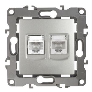 Розетка комбинированная RJ45+RJ11, Эра12, алюминий
