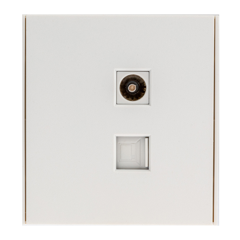 Меxанизм компьютерной и телевизионной розетки скрытой установки KRANZ предназначен для проводного подключения устройств к сети интернет посредством кабеля RJ45 CAT6, а также для подключения телевизионныx приемников к коаксиальной кабельной сети.