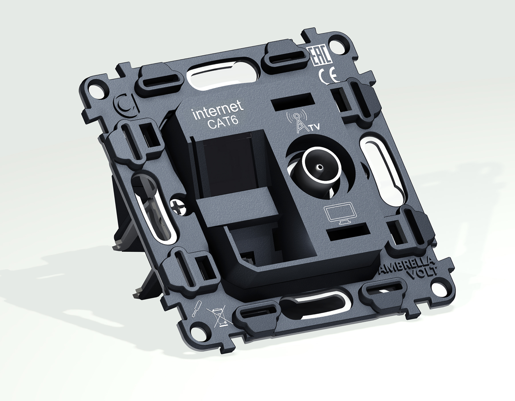 Механизм розетки компьютерной + TV оконечной RJ-45 (8P8C) CAT6 1000 Base-T/50-870 MHz 1dB с автоматической защитной шторкой QUANT VM195. Многогранный ассортимент Ambrella Volt включает в себя механизмы, лицевые панели и рамки, а также комплекты, доступные в различных цветовых решениях. Продукция представлена в модульном исполнении, что позволяет гибко настраивать внешнийвид и функциональность. Вам будет легко заменить лицевую панель, рамку или механизм, найдя идеальное сочетание цветов.