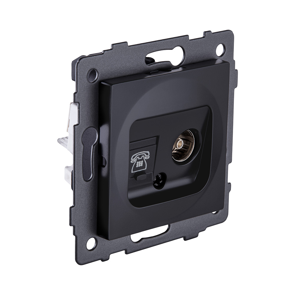 Розетка двойная TV (мама) + телефонная розетка RJ11, черный матовый Kollinger REA-013BM для Aspekt, Eleganz, Reflex. Относится к серии Aspekt;Eleganz Acryl;Eleganz Plex;Reflex AL;Reflex MG, артикул производителя REA-013BM.