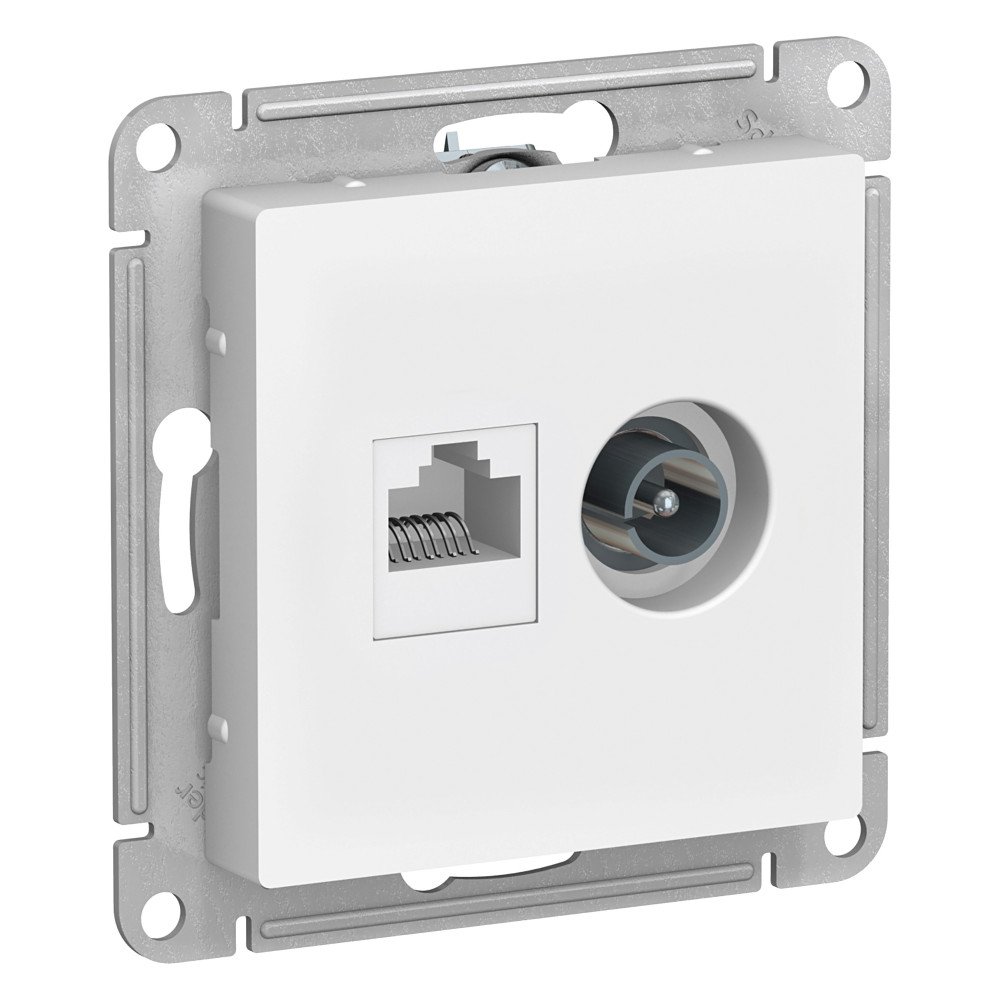 Механизм Systeme Electric (ранее Schneider Electric) серии AtlasDesign в цвете белый двойной розетки разъёмами RJ45 категория 5е и TV предназначен для удобного и быстрого подключения вашего компьютера и телевизора к соответствующим сетям.