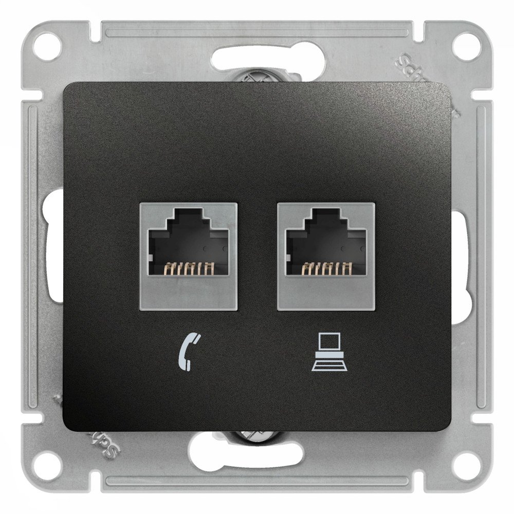 Механизм Systeme Electric (ранее Schneider Electric) серии Glossa (цвет антрацит) двойной розетки разъёмами RJ45 категория 5е и RJ11 предназначен для удобного и быстрого подключения вашего компьютера и телефона к соответствующим сетям.