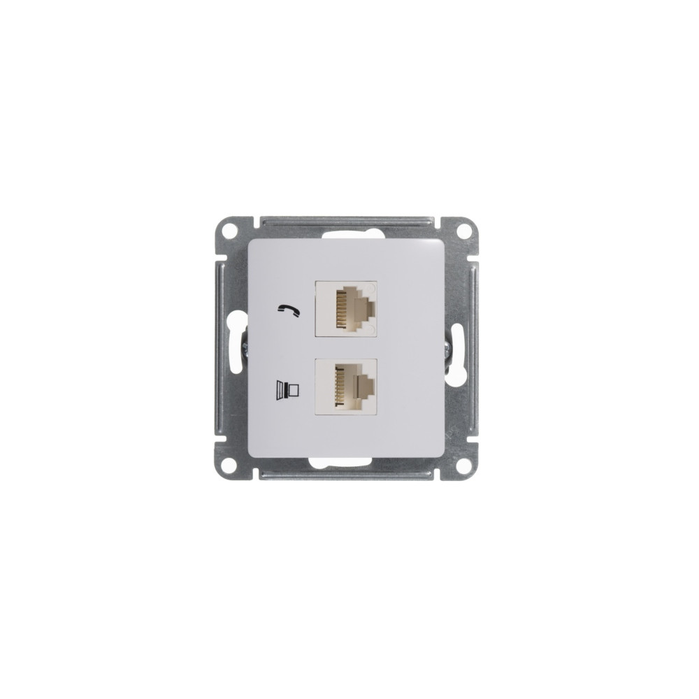 Механизм Systeme Electric (ранее Schneider Electric) серии Glossa (цвет белый) двойной розетки разъёмами RJ45 категория 5е и RJ11 предназначен для удобного и быстрого подключения вашего компьютера и телефона к соответствующим сетям.