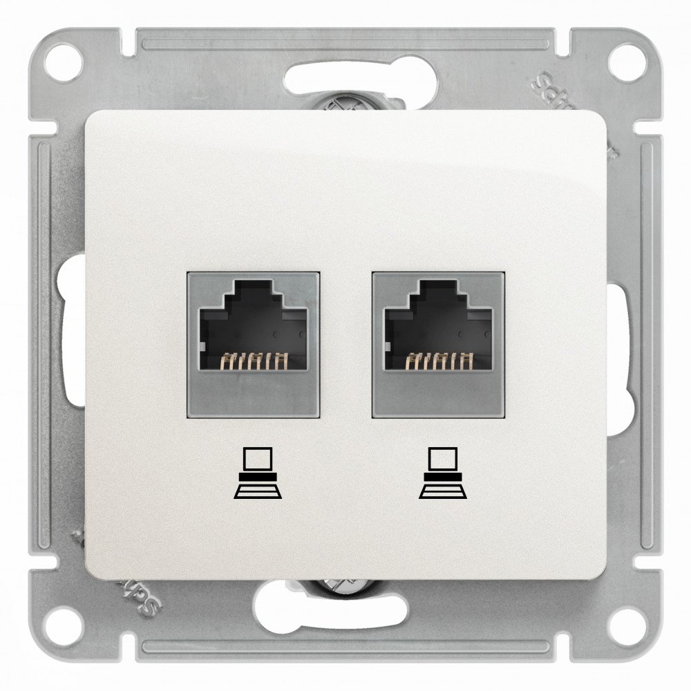 Механизм Systeme Electric (ранее Schneider Electric) серии Glossa (цвет перламутр) двойной розетки компьютерной с разъёмом RJ45 категория 5е предназначен для удобного и быстрого подключения вашего компьютера к компьютерной сети.