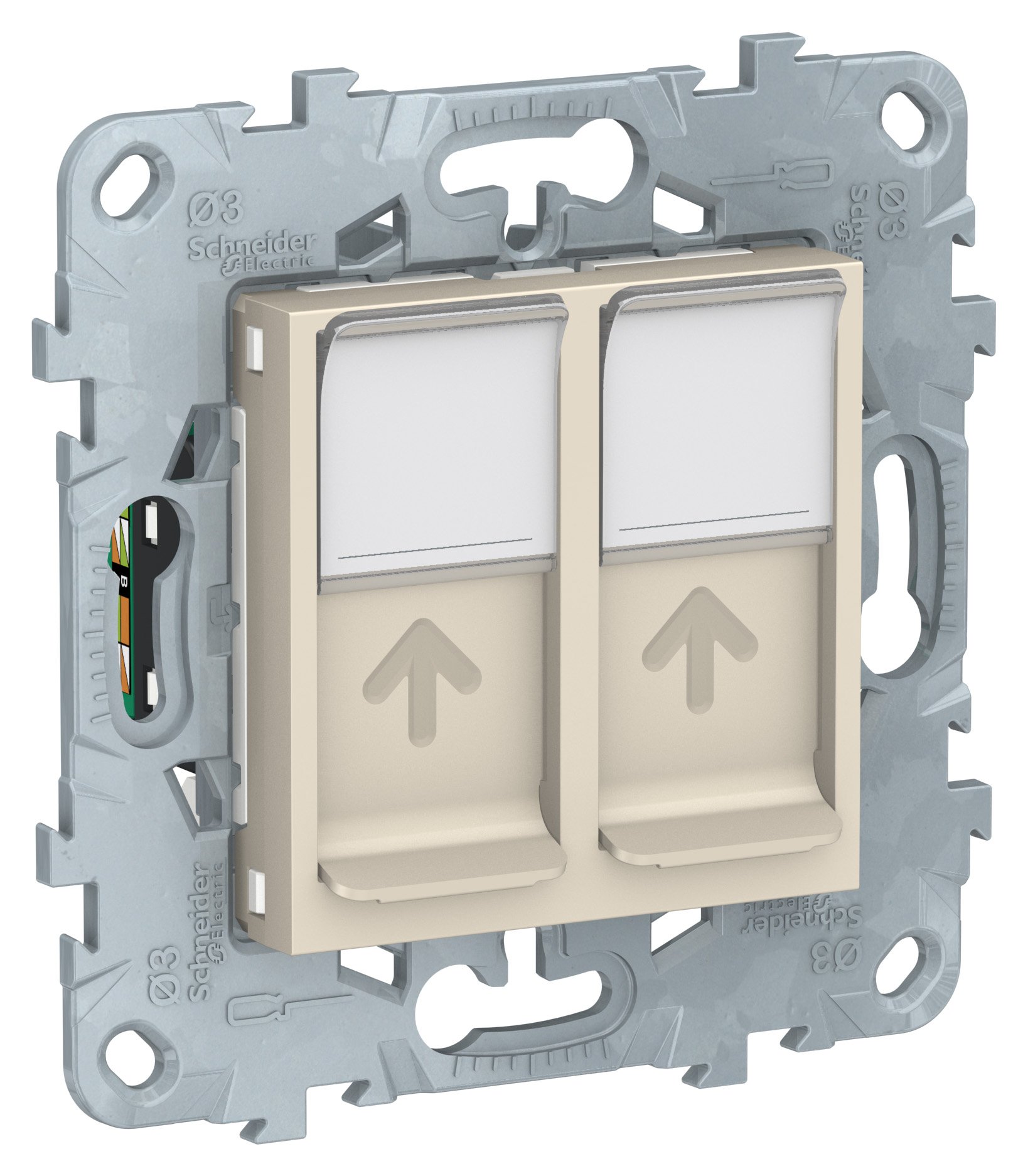 Розетка RJ45 категория 5е UTP Schneider Electric UNICA NEW (бежевый) двойная компьютерная с полем для надписи.