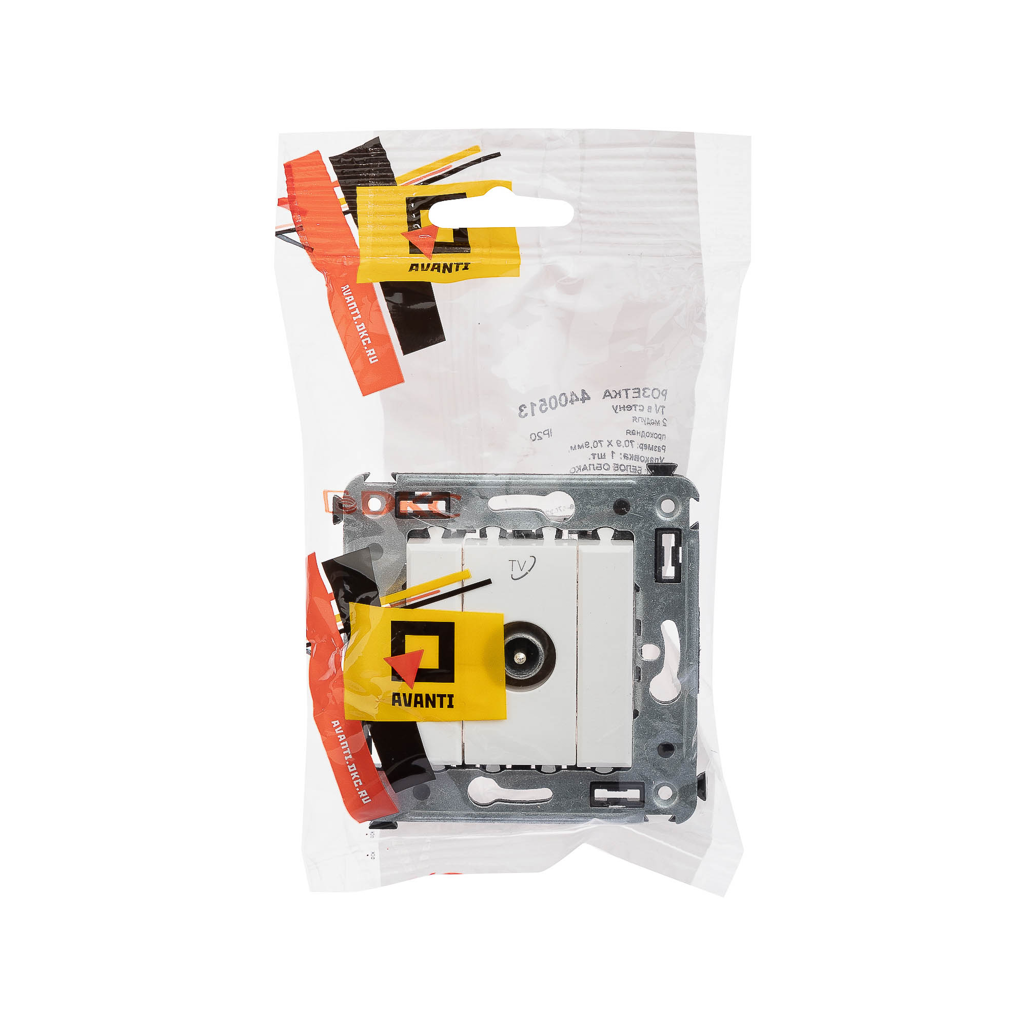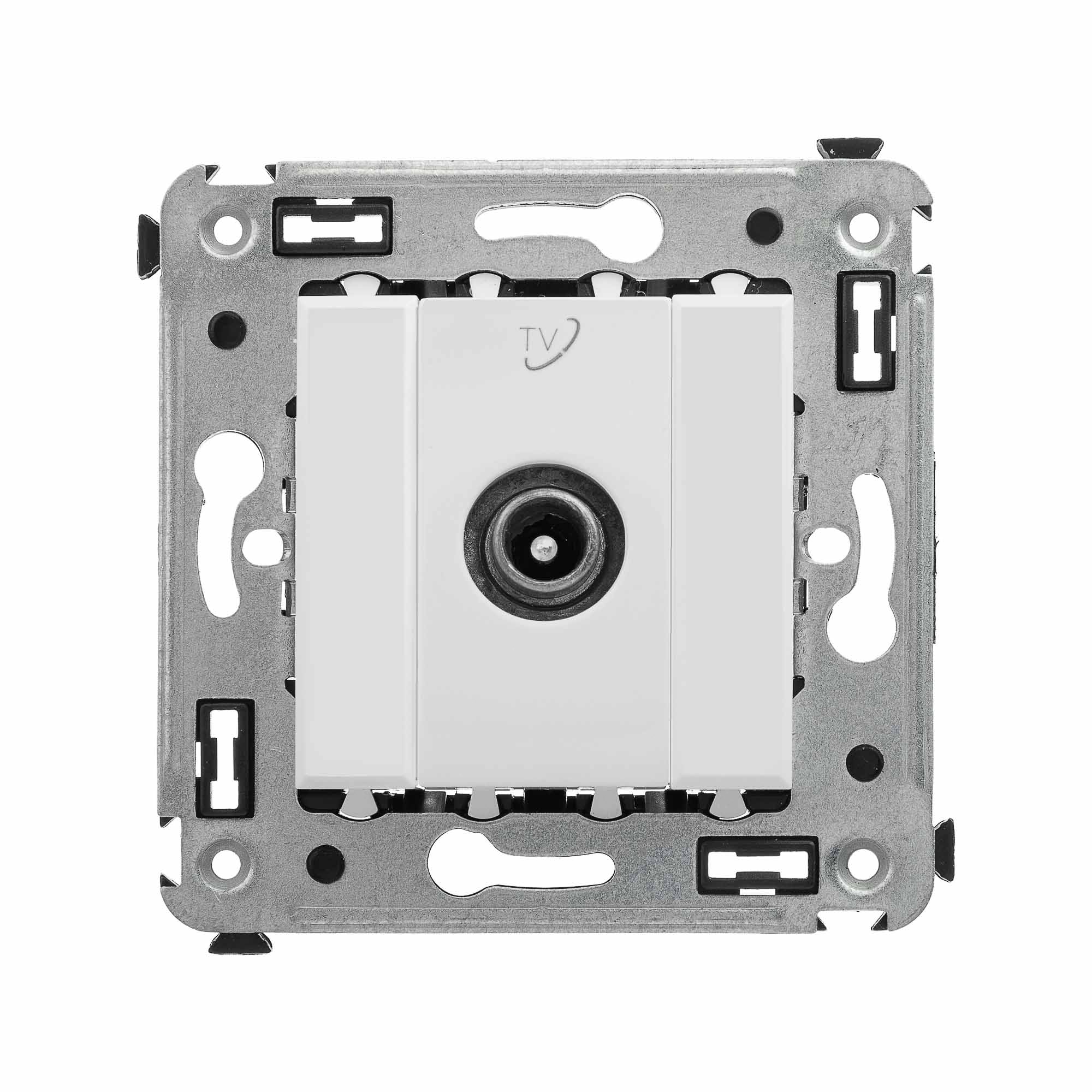 Проходные телевизионные розетки предназначены для скрытой установки в стенах и применяются для подключения телевизионного кабеля. TV-розетки производства ДКС рассчитаны на частоту до 2400 Гц. Материал – металл, пластик. Пластиковые части имеют цвет "Белое облако" – это универсальный, легкий и воздушный оттенок, смягчающий цветовые сочетания и несущий чувство покоя. Количество модулей в изделии – 2.