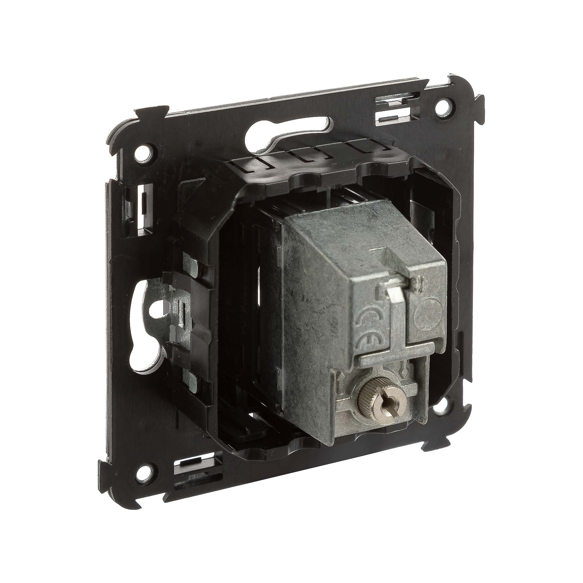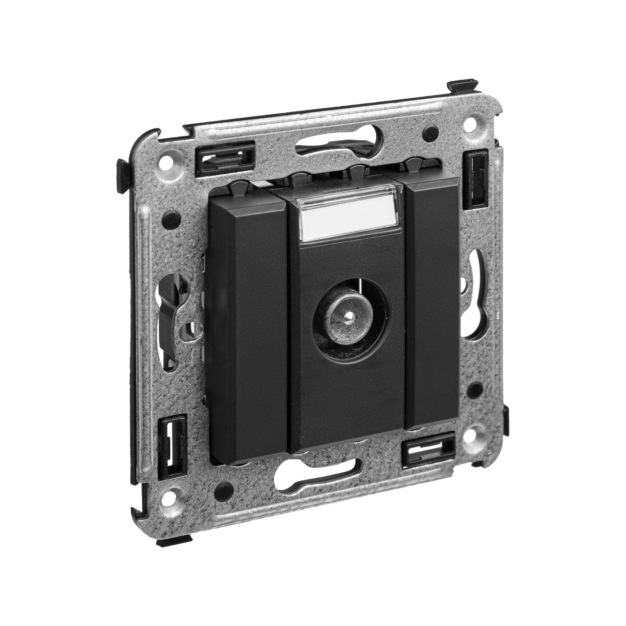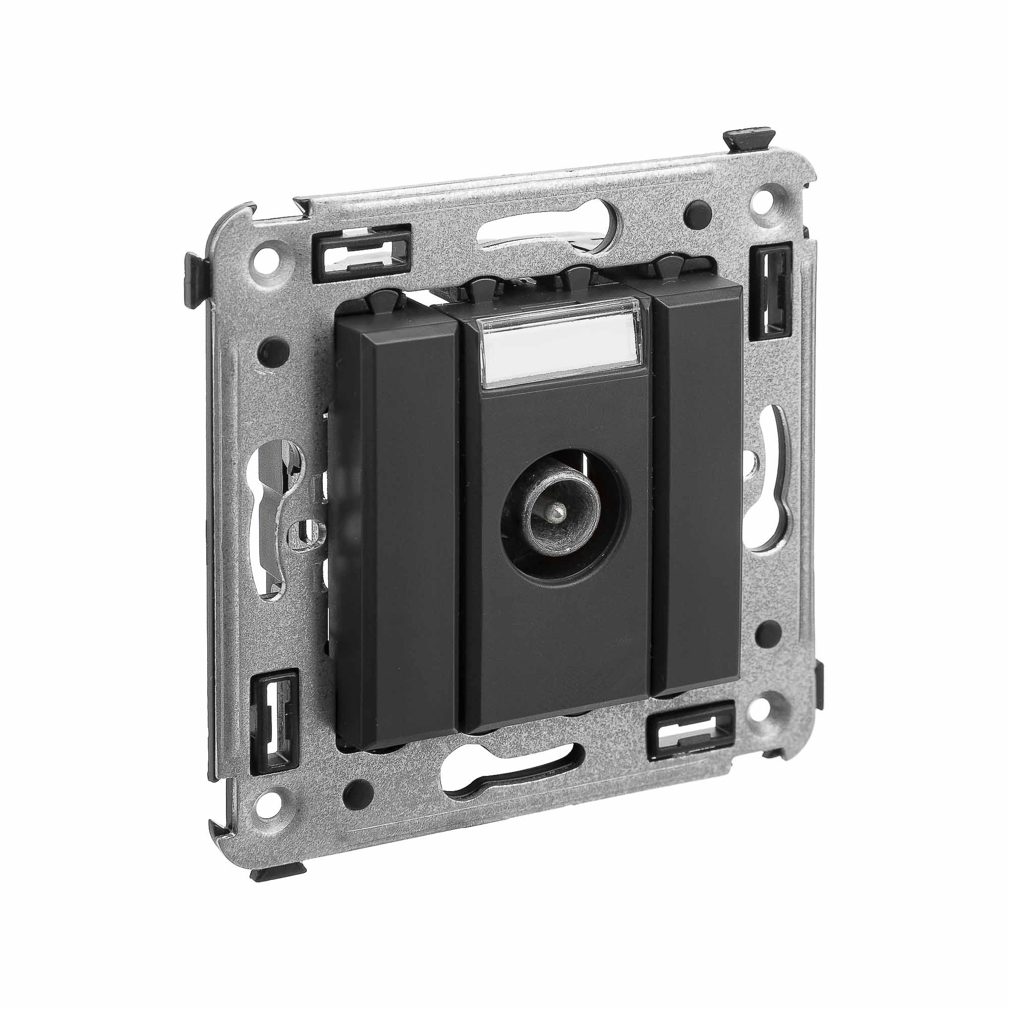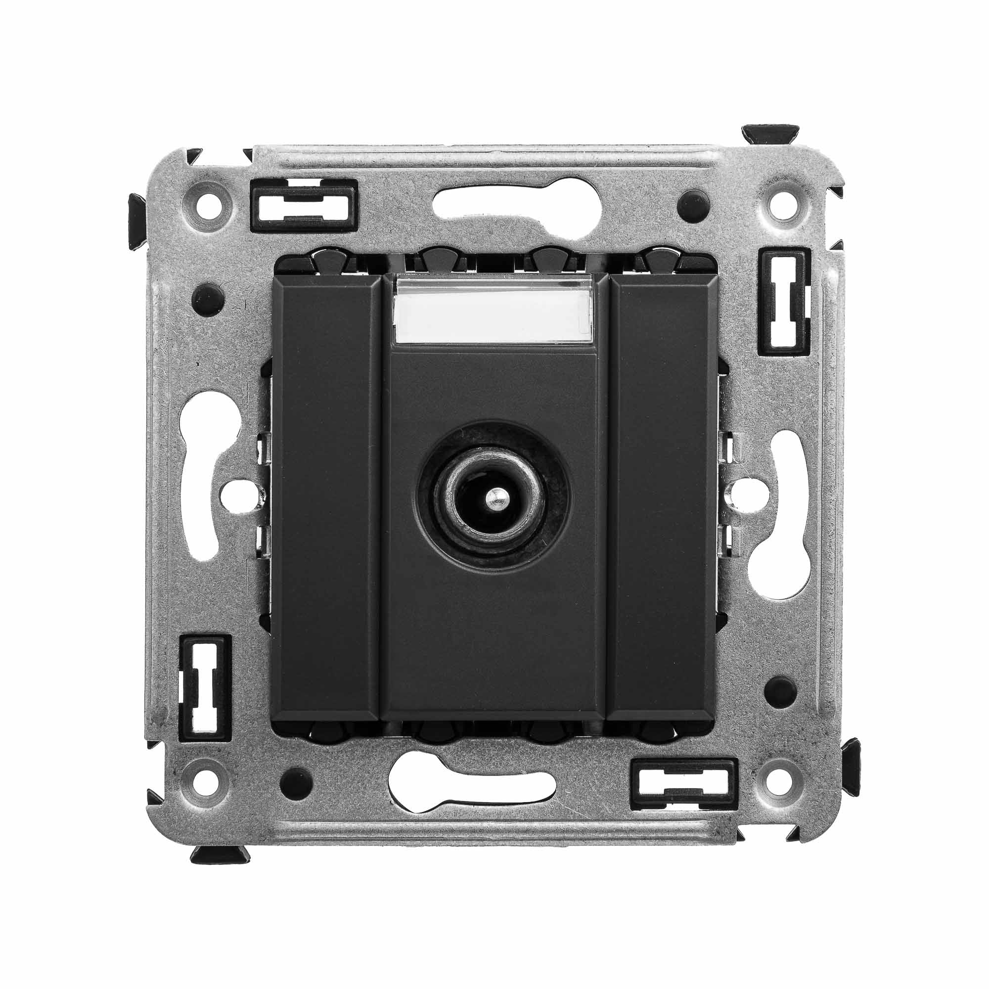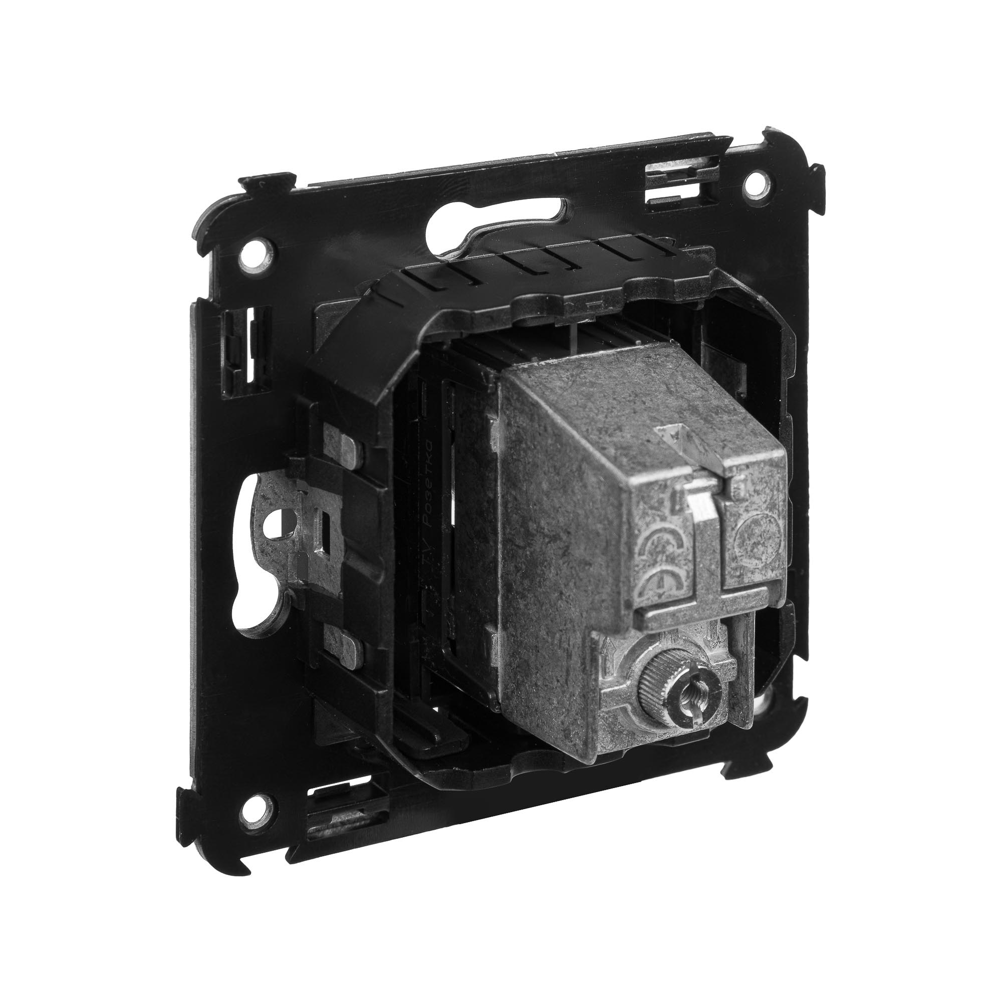 Розетка TV проходная в стену. Предназначена для монтажа в подрозеточные коробки глубиной не менее 45 мм (код 59301). Используется для подключения телевизионного кабеля к телевизору. Винтовые зажимы. Диапазон рабочих частот 4–2400 МГц; затухание