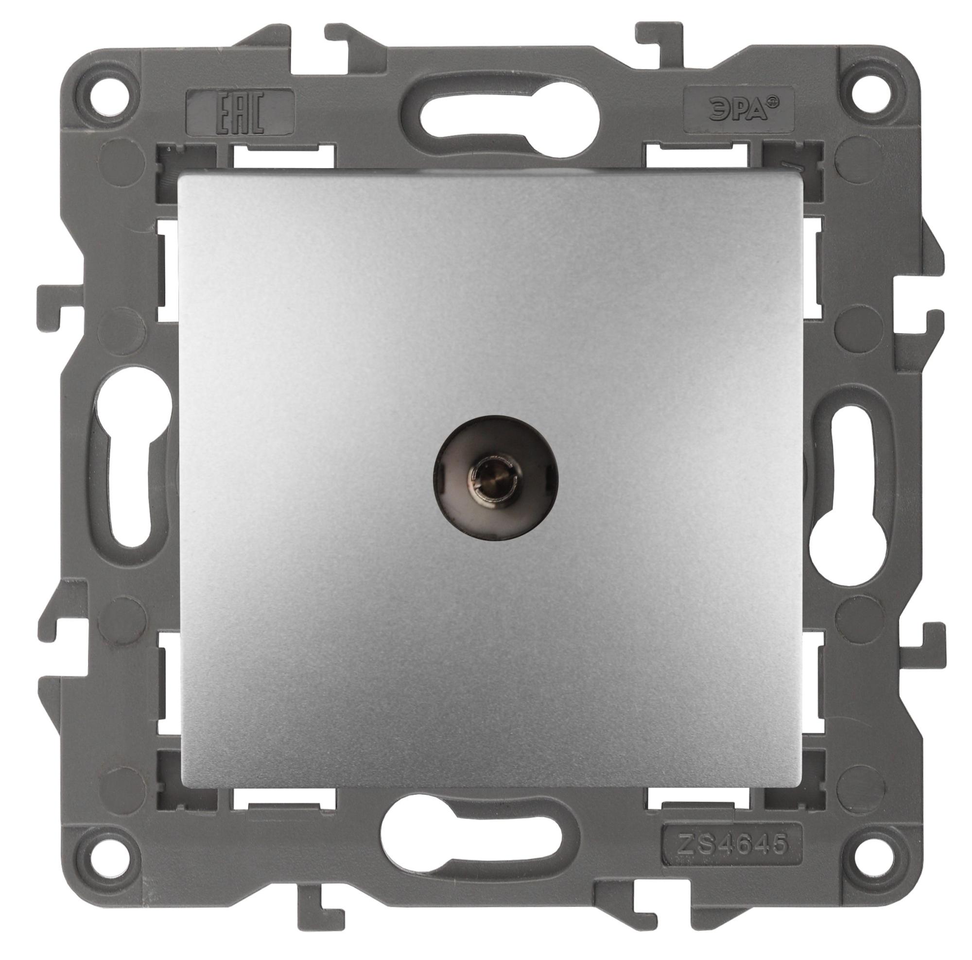 Розетка телевизионная одиночная серии Эра Elegance цвет алюминий 14-3101-03. Рамки приобретаются отдельно. Рамки Эра Elegance ПЛАСТИК: 1 пост 14-5001-хх, 2 поста 14-5002-хх, 3 поста 14-5003-хх, 4 поста 14-5004-хх, 5 постов 14-5005-хх; СТЕКЛО: 1 пост 14-5101-хх, 2 поста 14-5102-хх, 3 поста 14-5103-хх, 4 поста 14-5104-хх; МЕТАЛЛ: 1 пост 14-5201-хх, 2 поста 14-5202-хх, 3 поста 14-5203-хх, 4 поста 14-5204-хх; ДЕРЕВО: 1 пост 14-5301-хх, 2 поста 14-5302-хх, 3 поста 14-5303-хх, 4 поста 14-5304-хх (хх - код цвета: 00-прозрачный, 01-белый, белёный дуб, 02-слоновая кость, 03-алюминий, 04-шампань, 05-чёрный, чёрное дерево, 07-ясень, 09-дуб, 10-венге, 11-клён, 14-медь, 21-жёлтый, 22-оранжевый, 23-красный, 25-бордо, 26-лайм, 27-зелёный, 28-голубой, 29-синий, 30-розовый, 31-мокко, 32-серый, 41-сталь, 42-титан).