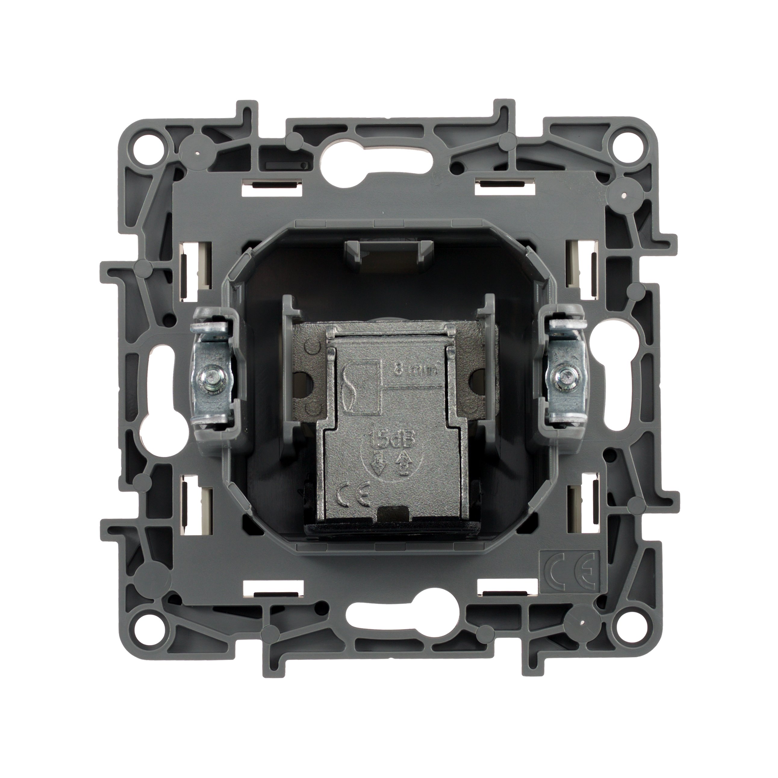 - Присоединение приходящего и отходящего коаксиальных кабелей к розетке осуществляется удобным безвинтовым коннектором.