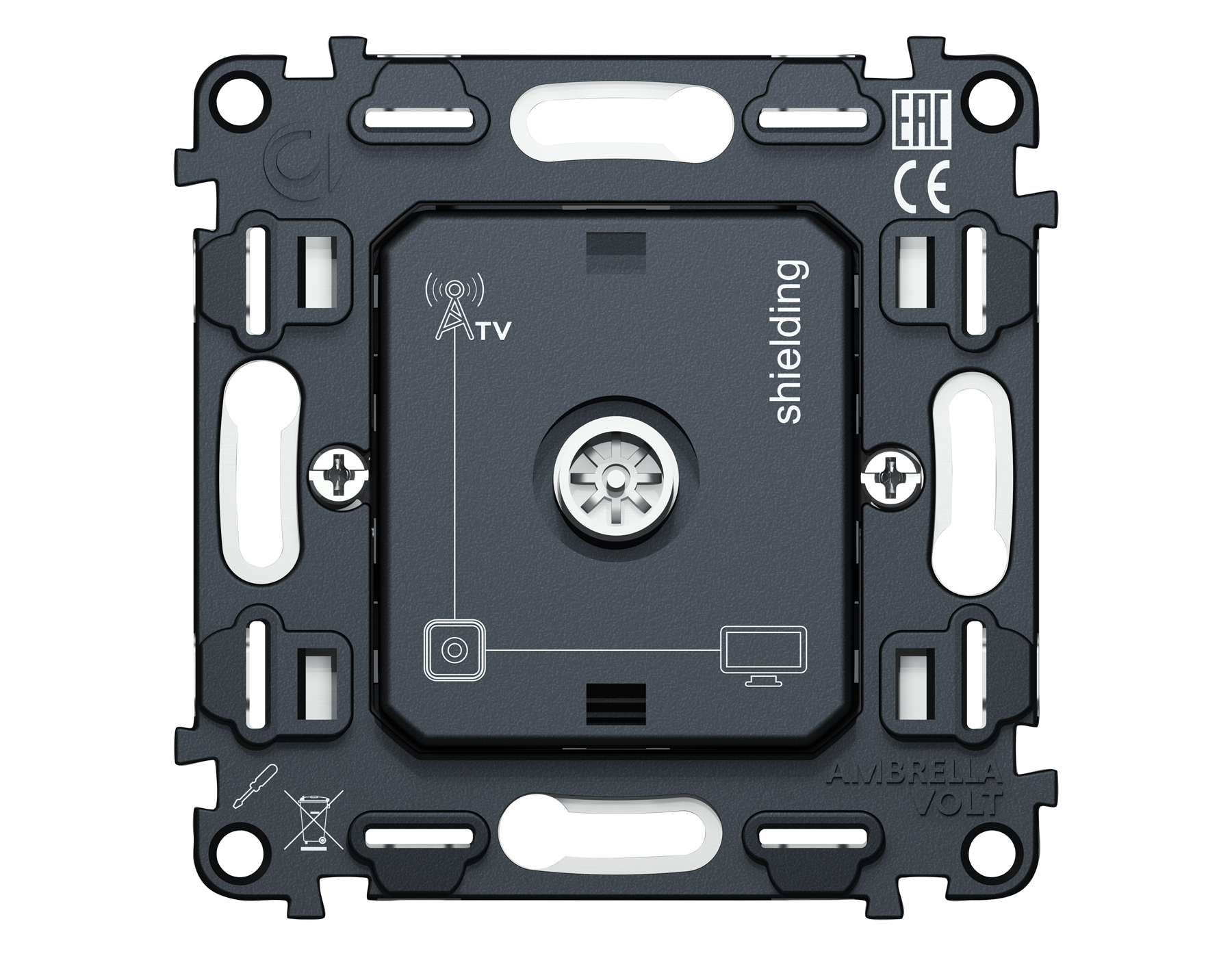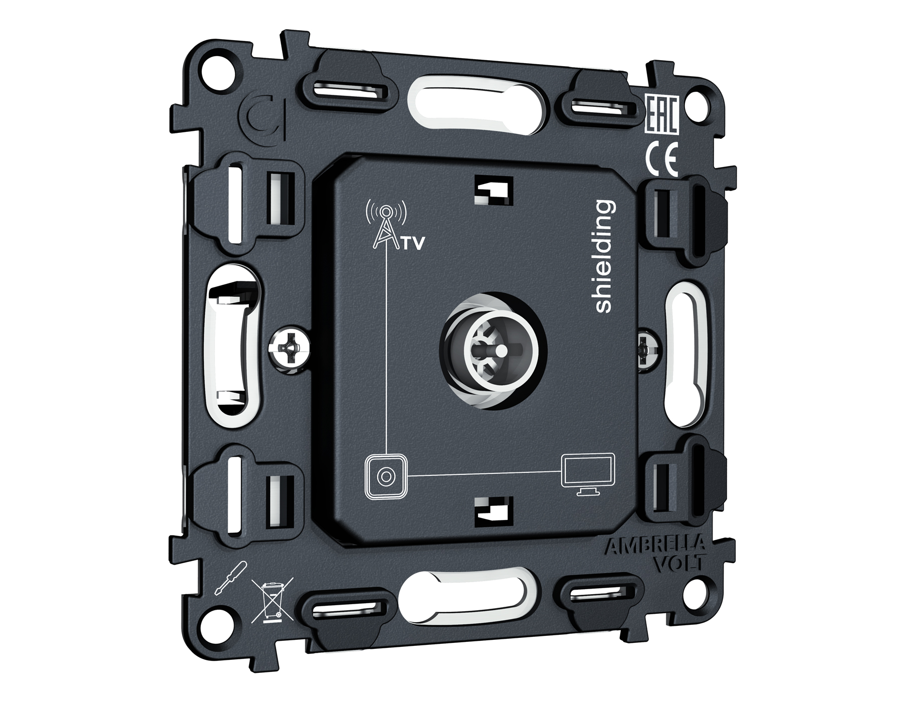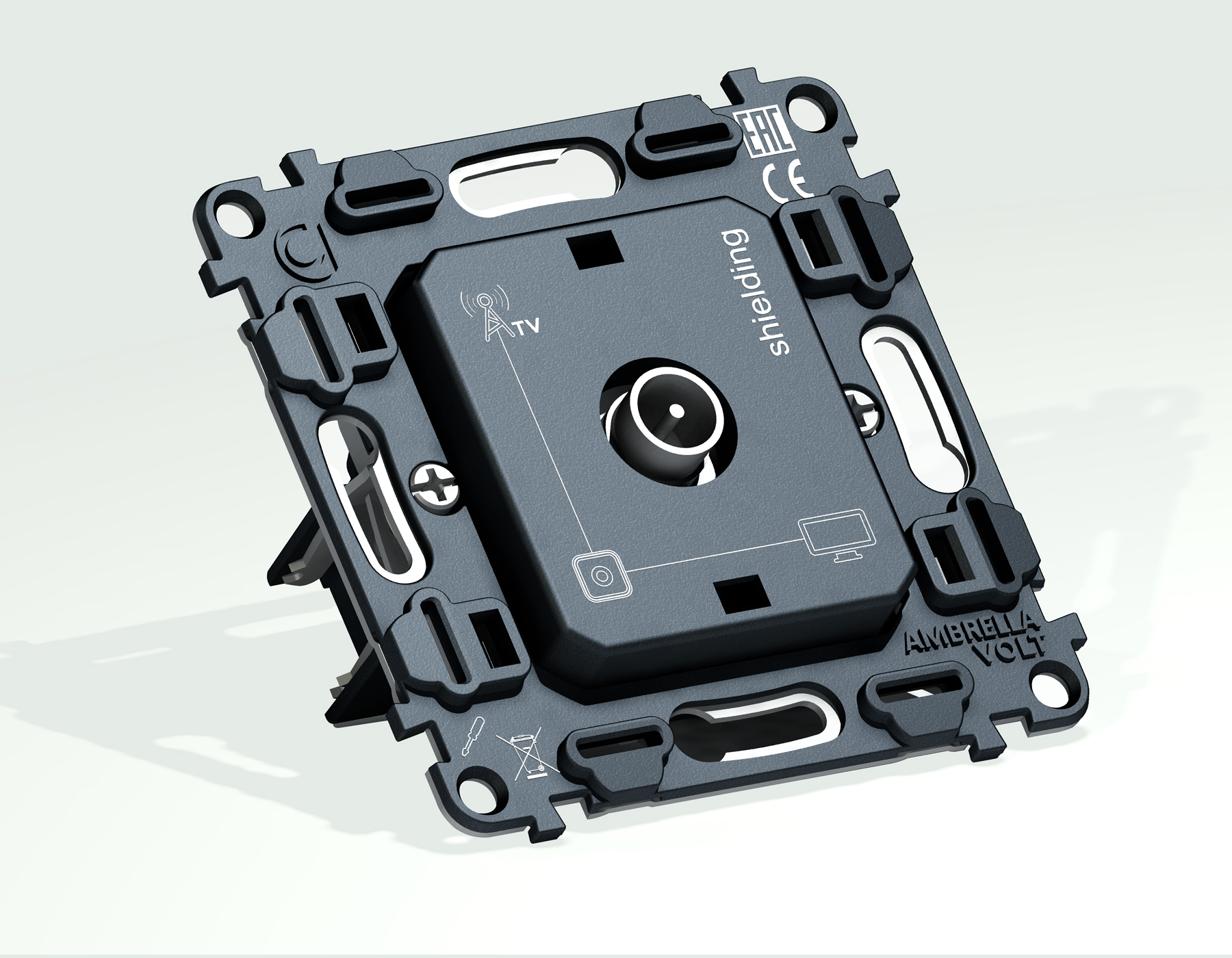Механизм TV розетки оконечной экранированной 5-1000 MHz 3dB QUANT VM199. Многогранный ассортимент Ambrella Volt включает в себя механизмы, лицевые панели и рамки, а также комплекты, доступные в различных цветовых решениях. Продукция представлена в модульном исполнении, что позволяет гибко настраивать внешнийвид и функциональность. Вам будет легко заменить лицевую панель, рамку или механизм, найдя идеальное сочетание цветов.