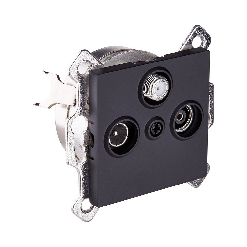 Розетка тройная TV (мама) + TV (папа) + спутниковая SAT, черный матовый Kollinger REA-036BM для Aspekt, Eleganz, Reflex. Относится к серии Aspekt;Eleganz Acryl;Eleganz Plex;Reflex AL;Reflex MG, артикул производителя REA-036BM.