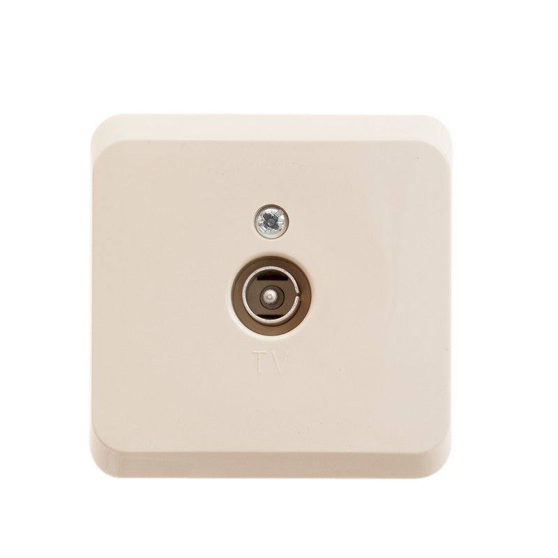 розетка ТЕЛЕВИЗИОННАЯ TV 0,7DB, Коннектор, кремовая, наружная установка. диапазон: Etude - тип устройства или его аксессуаров: ТВ розетка - ТВ розетка: одиночная. Преимущества: Удачное решение для города и дачи, Доступная цена, Современный дизайн, Высокая степень надежности, Большой выбор функциональных возможностей и цветовых сочетаний, Простота и удобство монтажа, Соответствие ГОСТ Р и МЭК, Удобная упаковка.. применения: - Для загородного жилья, Для торговых центров, павильонов, зданий из сэндвич-панелей, где невозможно штробление стен, Прекрасная замена вышедших из строя электроустановочных изделий в многоквартирных домах, Для влажных помещений (IP44)..