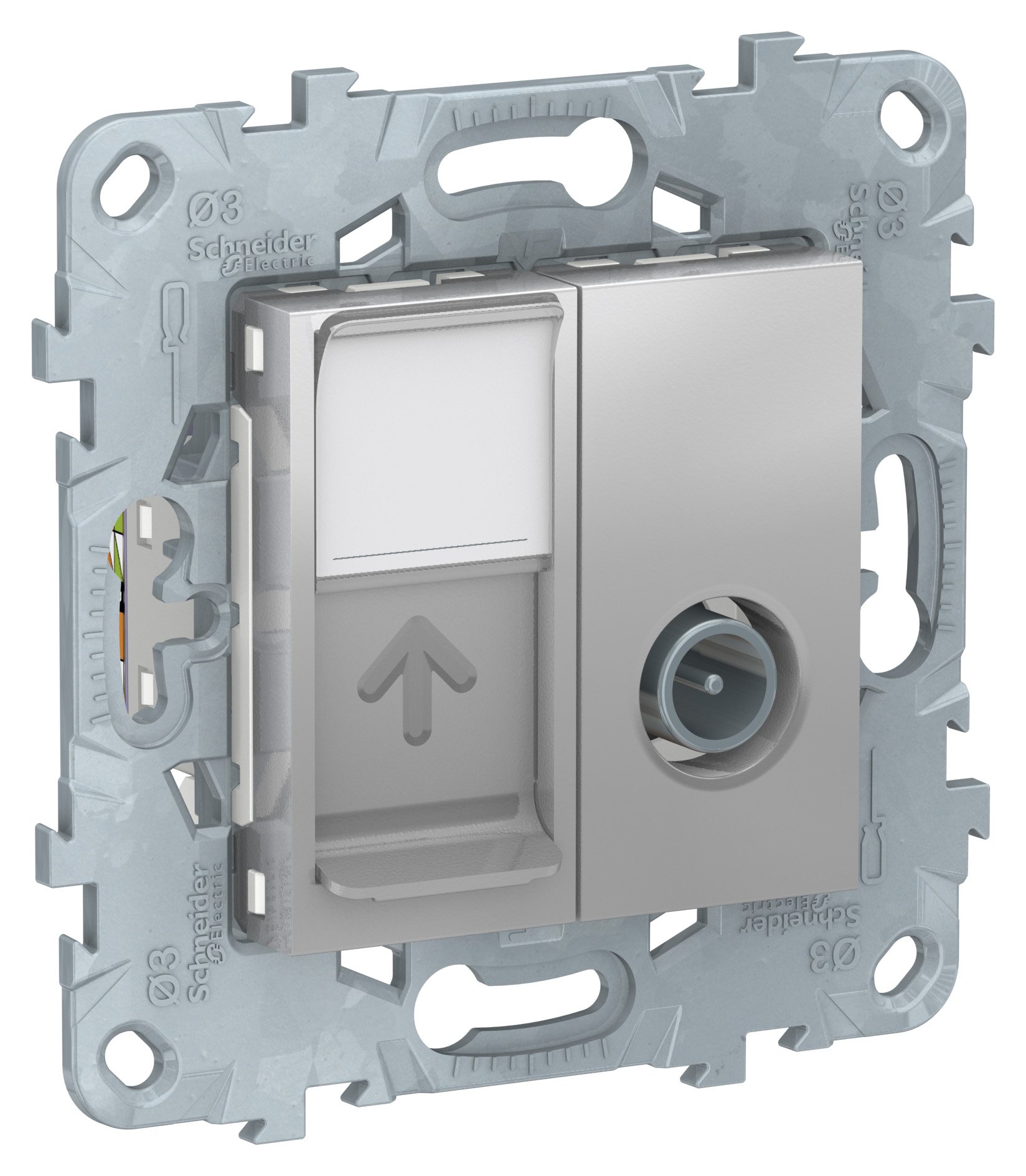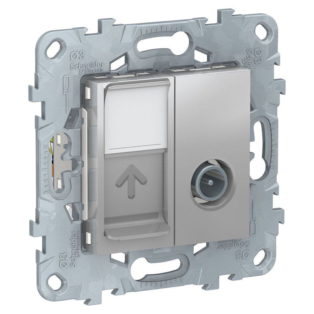 Розетка RJ45 категория 6 и TV Schneider Electric UNICA NEW (алюминий) одиночная.