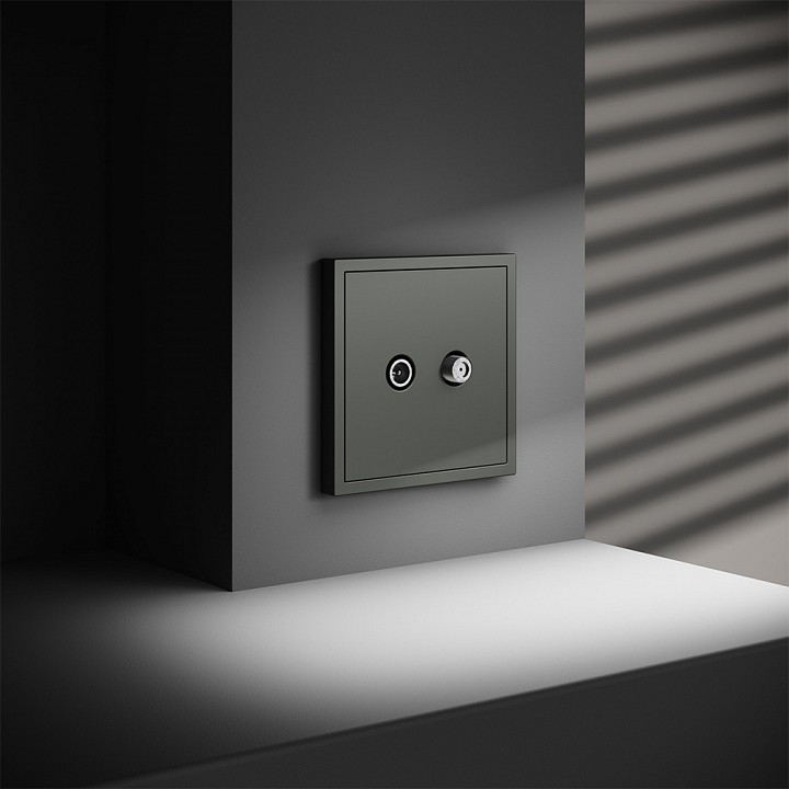 Корпус. TV+SAT розетка «прячет» внутри стены неприглядный провод и упрощает подключение телевизора. Внешний вид — лаконичный, без лишних деталей. Корпус выполнен из термостойкого поликарбоната.