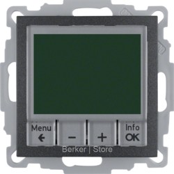 Berker S, B Антрацит матовый Регулятор температуры с центральной панелью. Благодаря использованию только лучших материалов и тщательному контролю качества, электроустановочные изделия (рамки, розетки, выключали) Berker стали надежным выбором для многих потребителей по всему миру. Их функциональность сочетается с эстетичным внешним видом, что делает их привлекательными для использования в различных интерьерах.