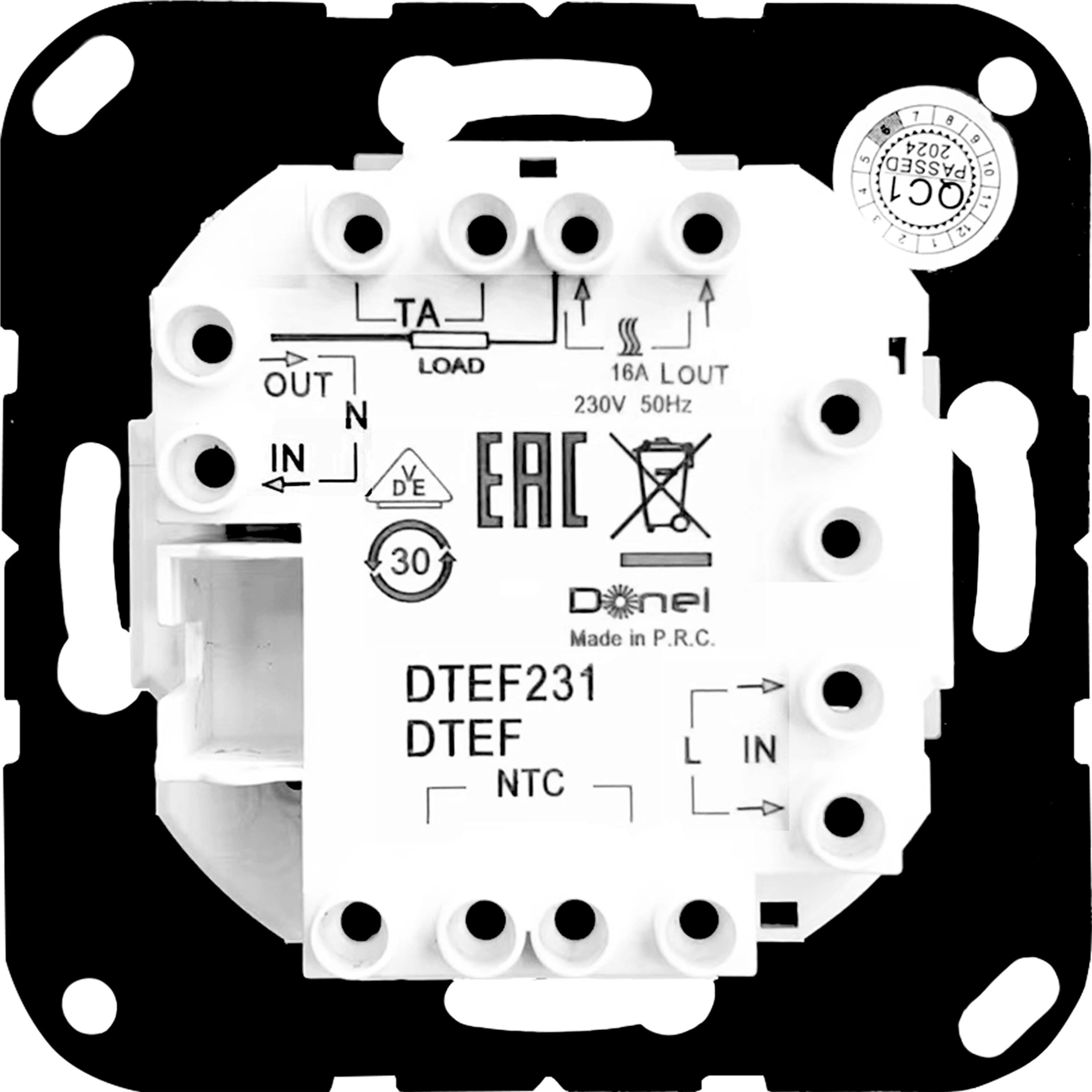 DTEF231. Механизм терморегулятора с внешним датчиком пола, AC230V, 16A, серия DTEF