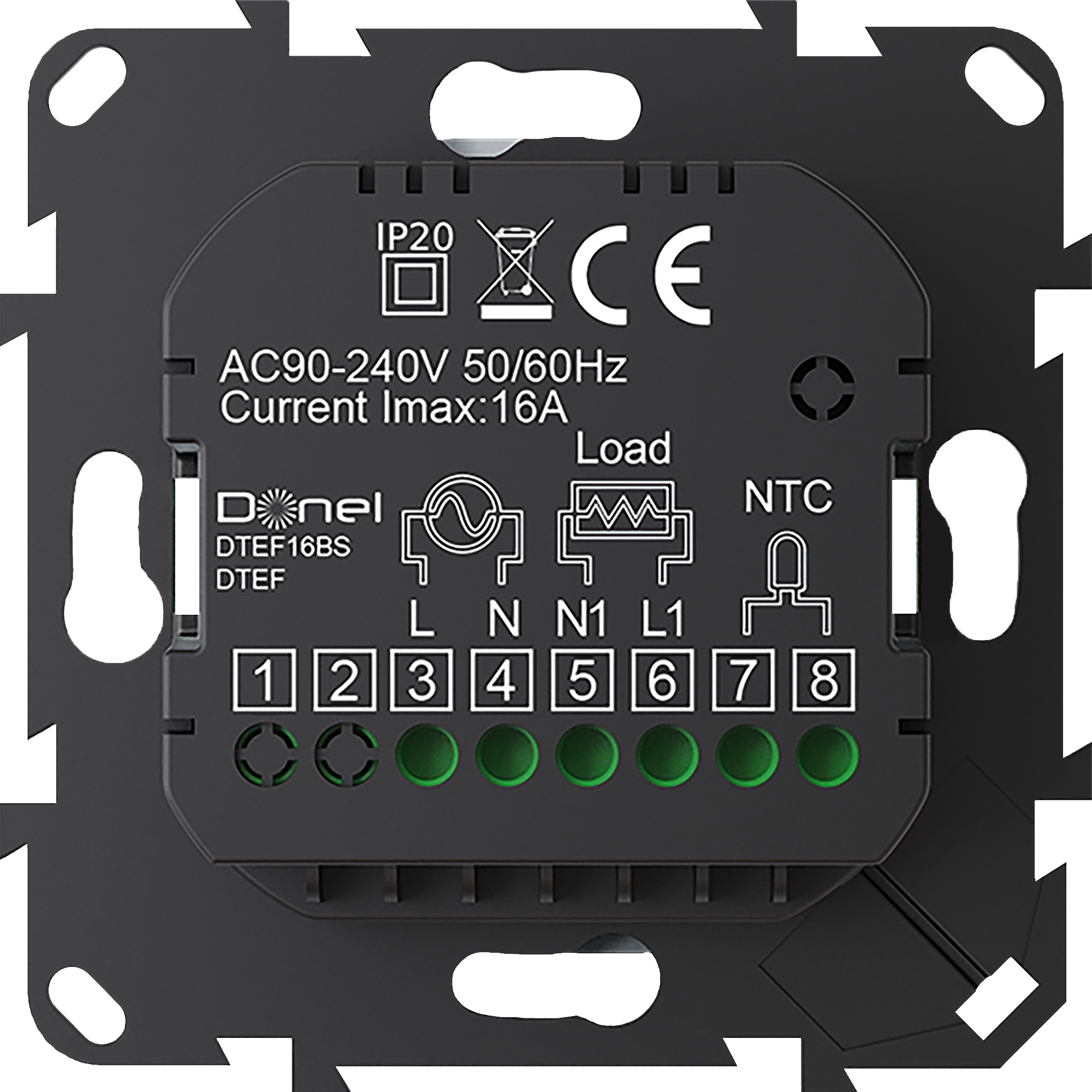 DTEF16BS. Термостат электронный с датчиком пола, 16 A, 55*55 мм, черное стекло