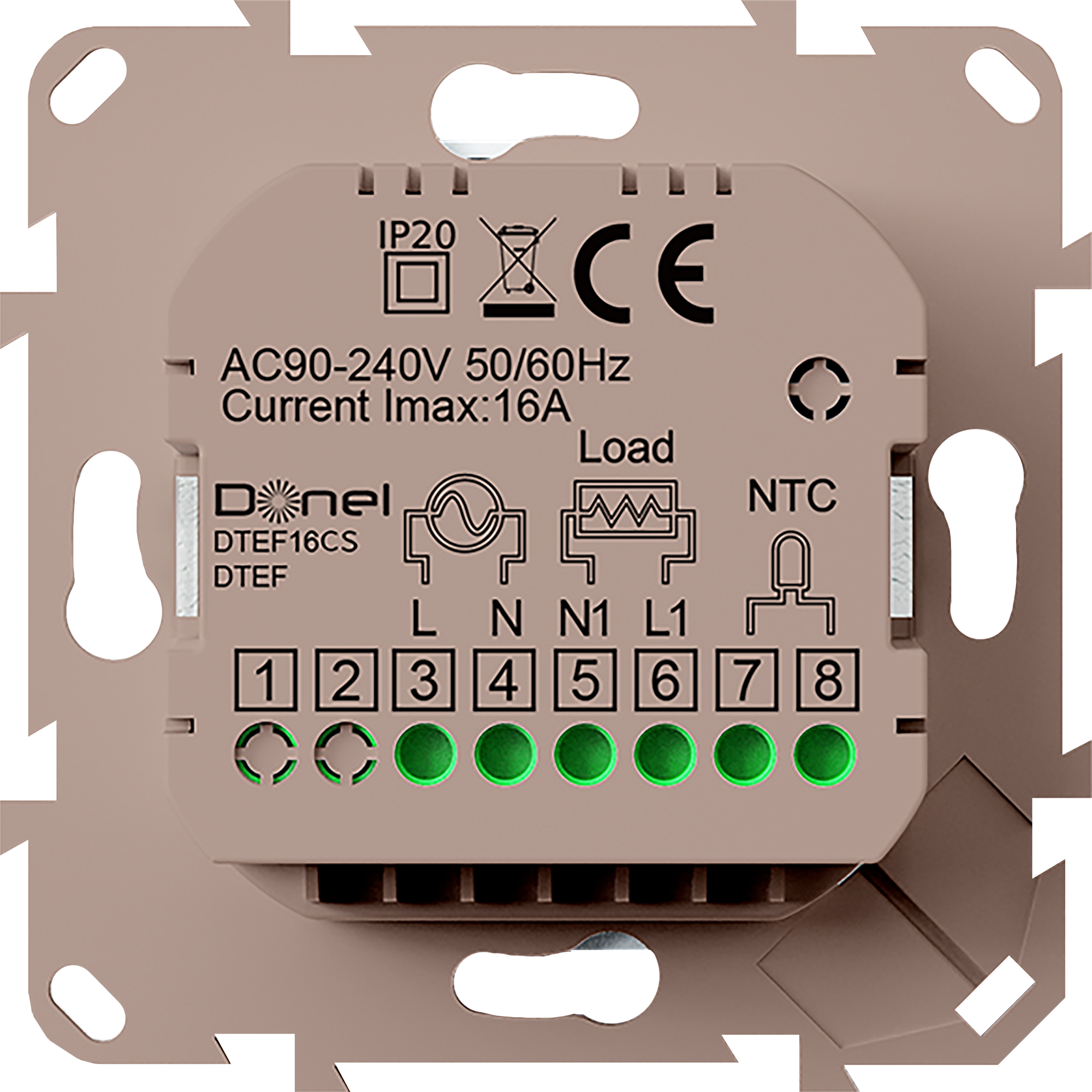 DTEF16CS. Термостат электронный с датчиком пола, 16 A, 55*55 мм, кашемир
