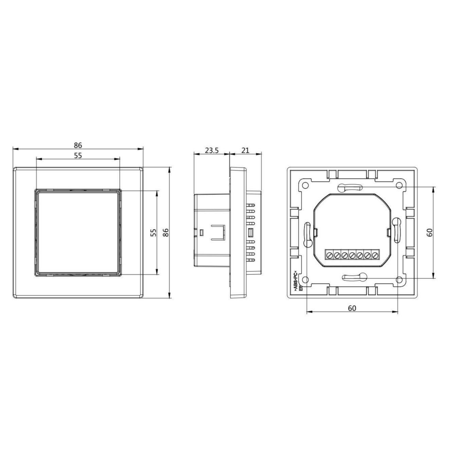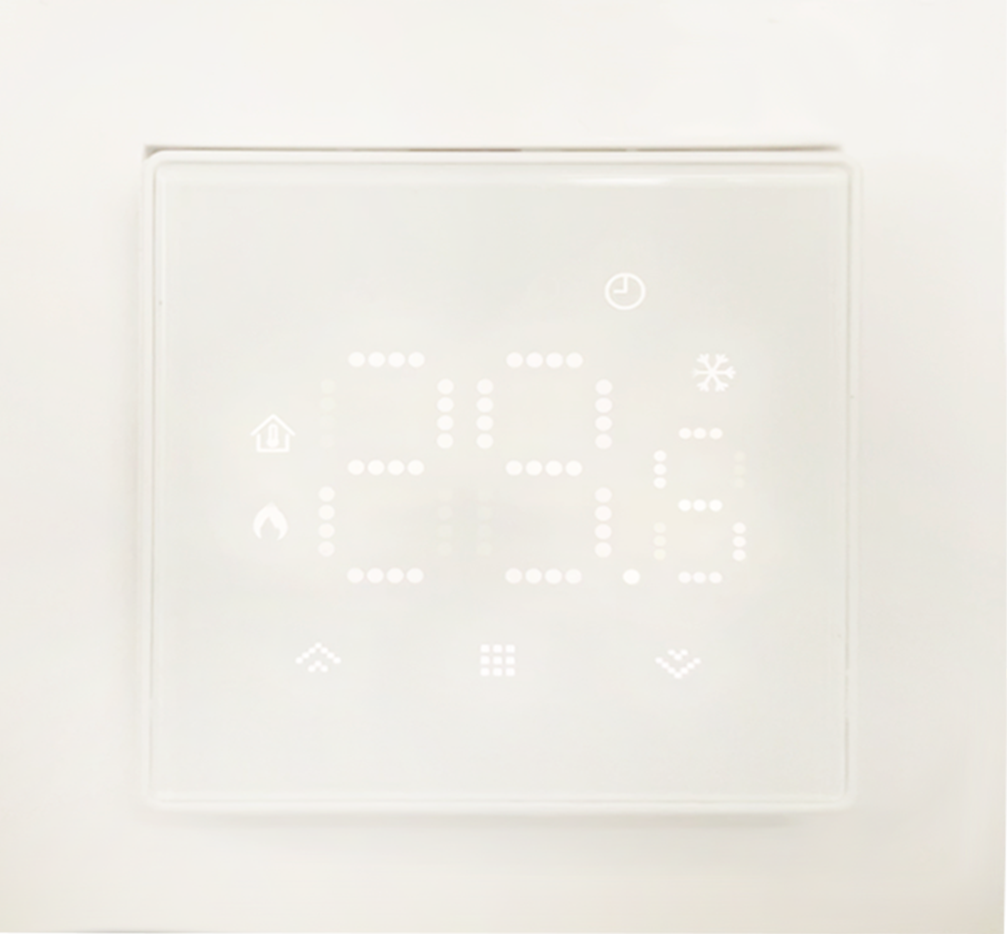 DTEF16WE. Термостат с датчиком пола, 16 A, 55*55 мм., белое стекло