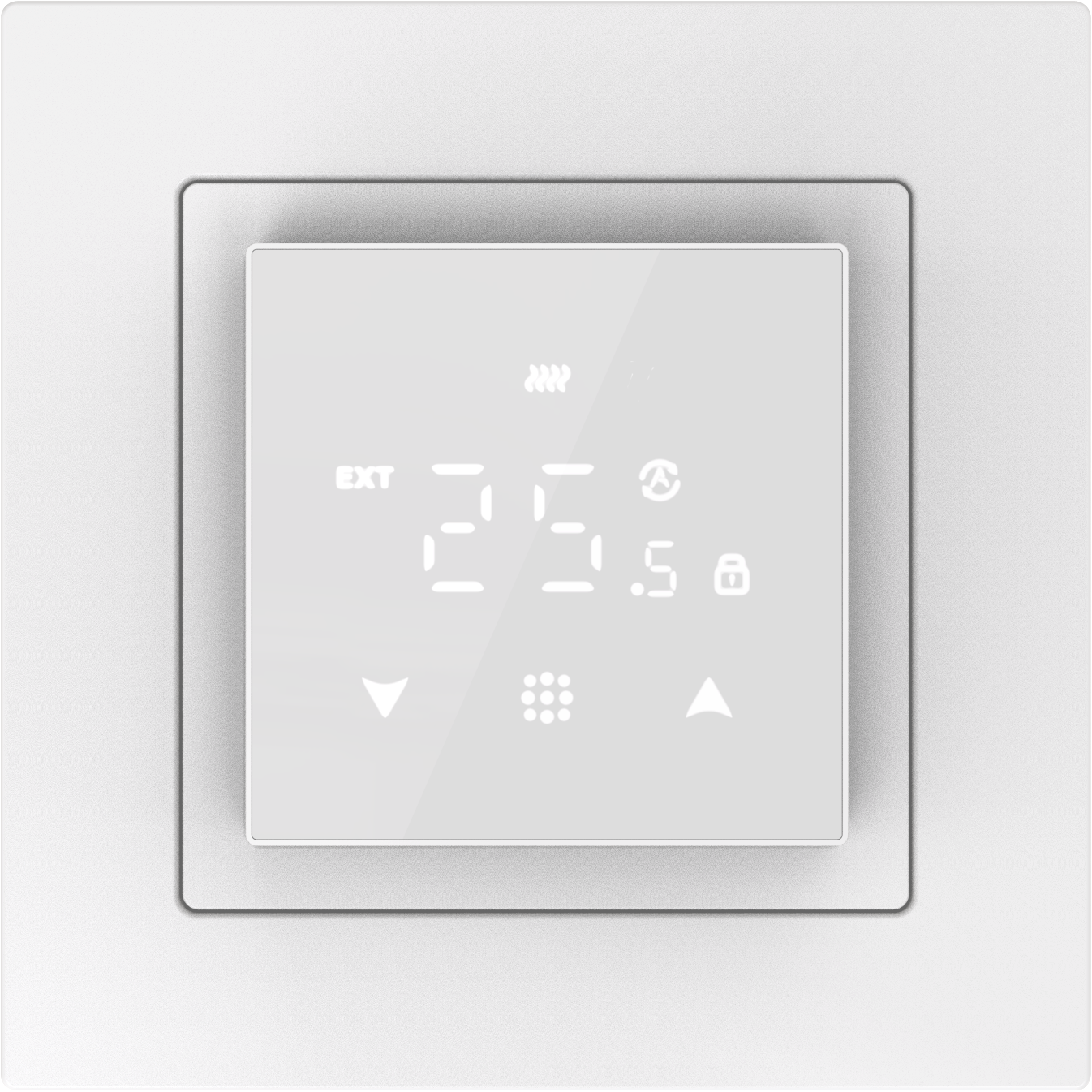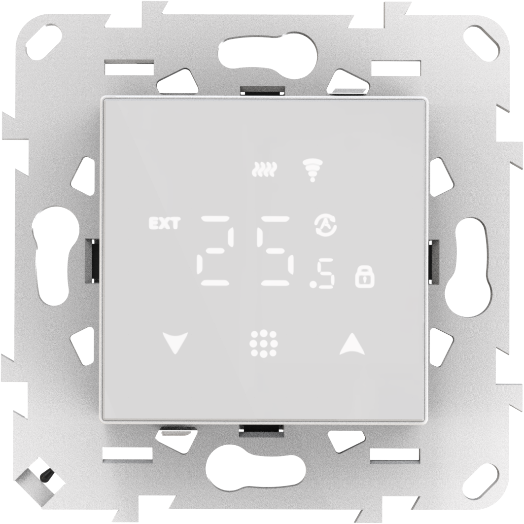 DTEF45W. Термостат с датчиком пола и воздуха 16A, 45*45 мм, белое стекло