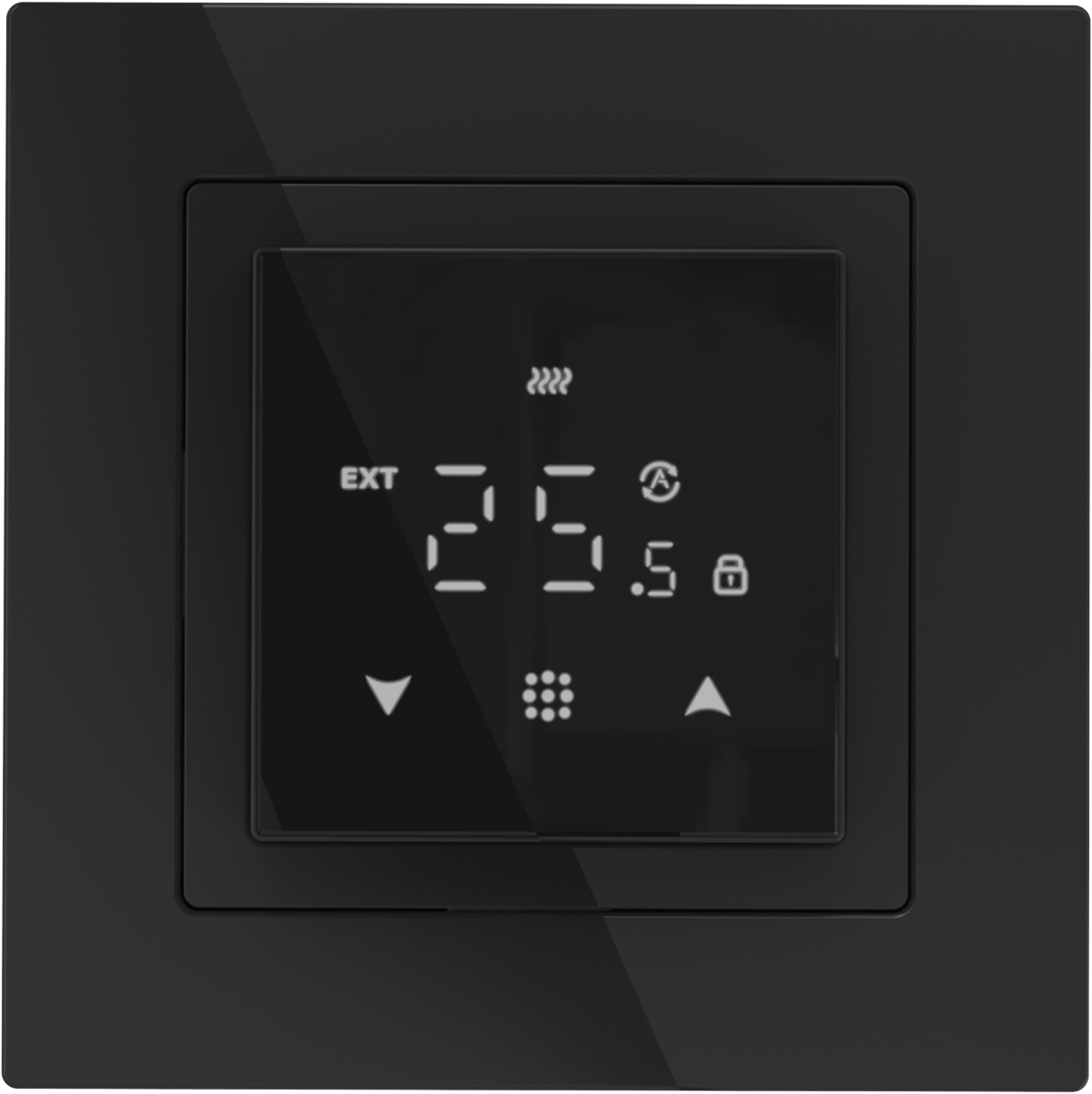 DTEF45B. Термостат с датчиком пола и воздуха, 16A, 45*45 мм, черное стекло