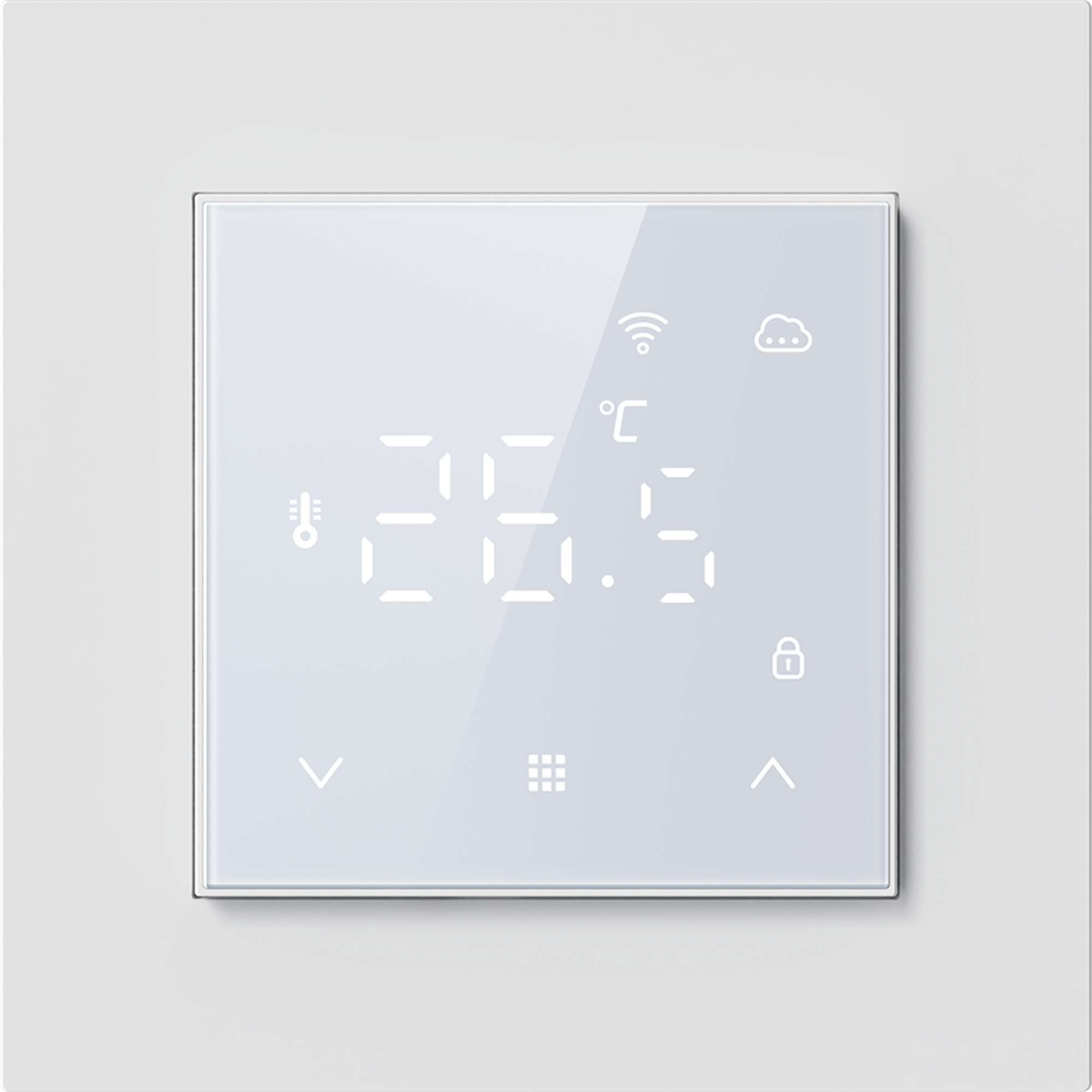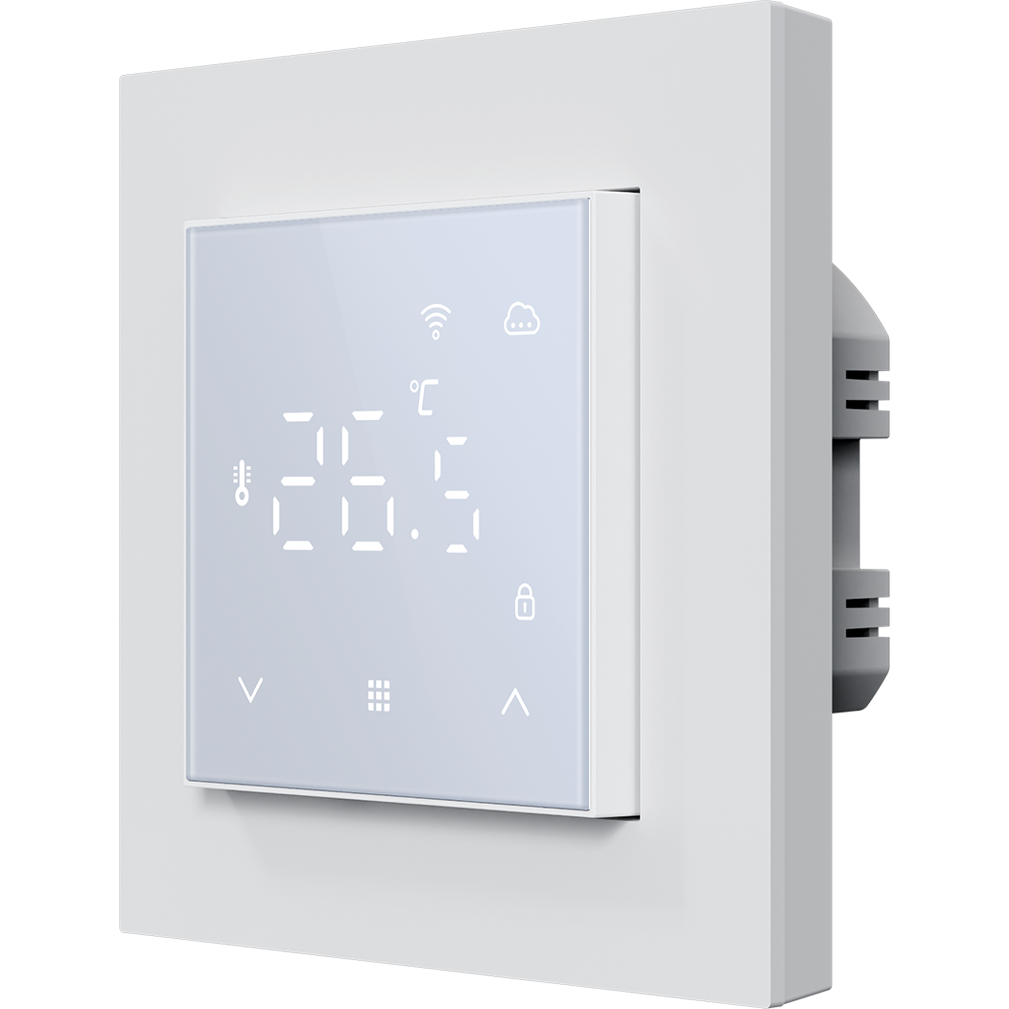 DTEF55W-WiFi. Термостат с датчиком пола и воздуха с WiFi, 16 A, 55*55 мм, программируемый, белое стекло