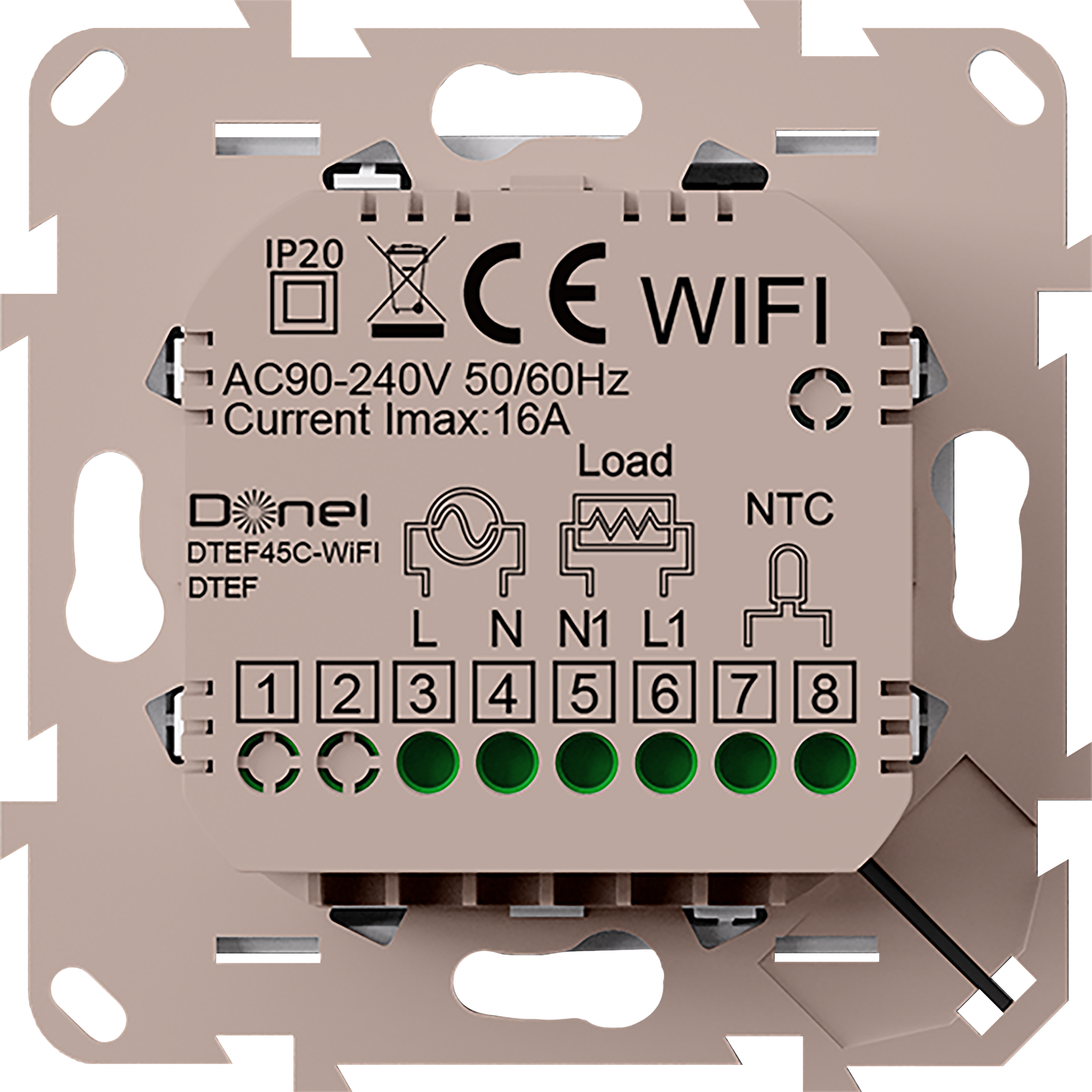 DTEF45C-WiFi. Термостат с датчиком пола, программируемый с Wi-Fi , 16 A, 45*45 мм. стекло кашемир