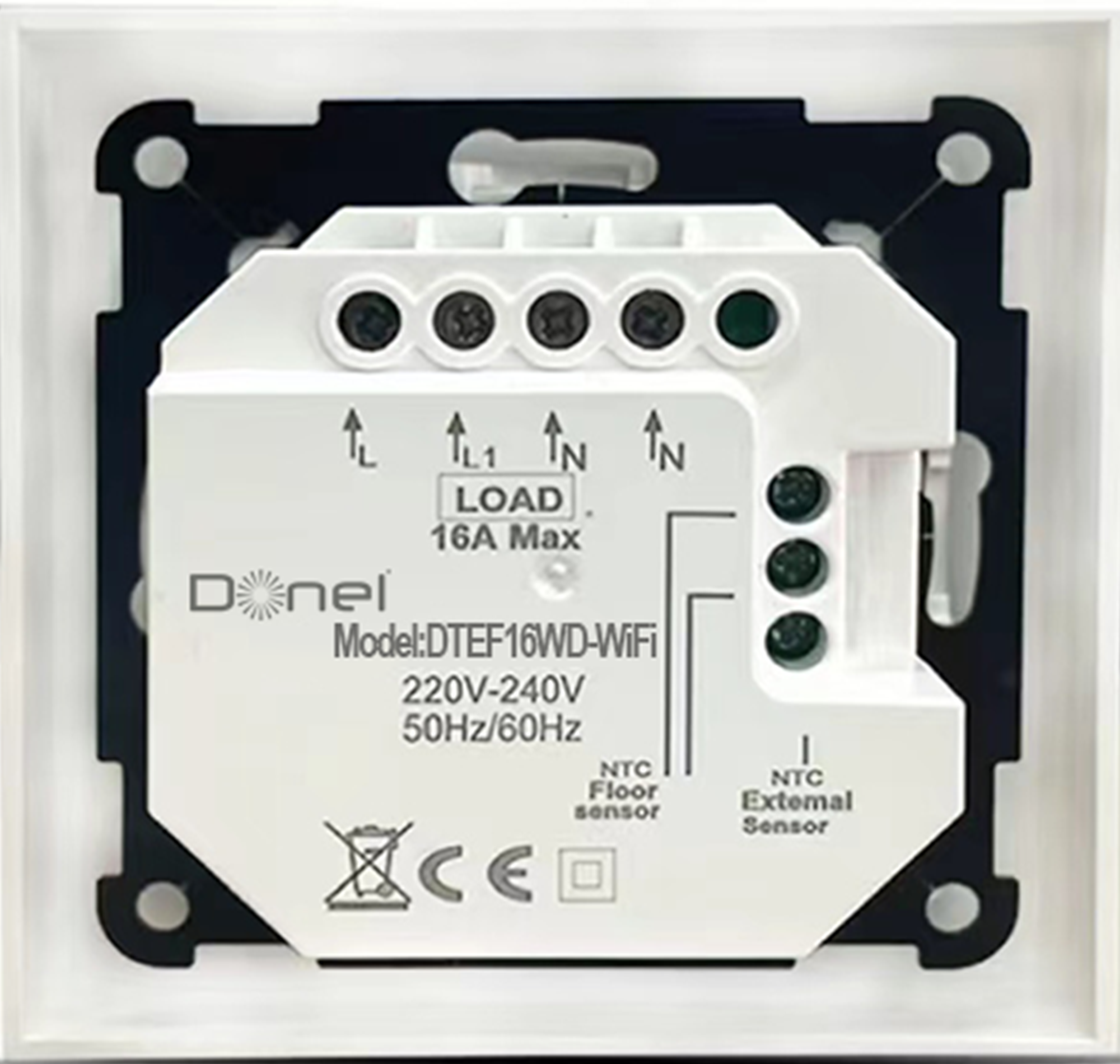 DTEF16WD-WiFi. Термостат с датчиком пола, программируемый с Wi-Fi , 16 A, 55*55 мм.белый
