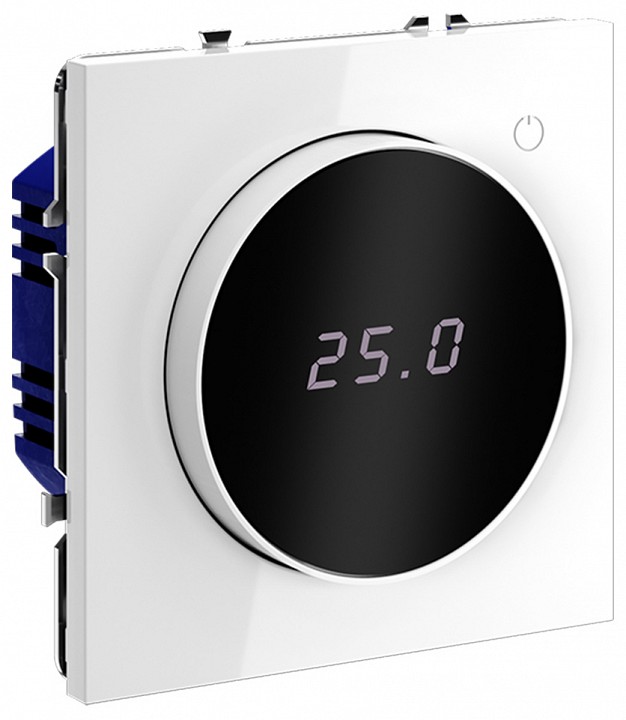 Конструктивные особенности. Терморегуляторы работают с любыми типами теплых полов и рассчитаны на нагрузку до 3500 Вт. Устройства оснащены светодиодной индикацией режима и дисплеем, на котором отображается температура поверхности пола. Красный индикатор — «подача питания на нагревательный кабель (идет процесс нагрева)», отсутствие индикации — «заданная температура достигнута». В течение 15 минут после нагрева терморегулятор переходит в интеллектуальный «спящий режим», уменьшая яркость подсветки цифр и сокращая энергопотребление. Регулировка осуществляется вращением панели управления. Терморегулятор поставляется в комплекте с механизмом из пластиковой накладки и датчиком температуры.