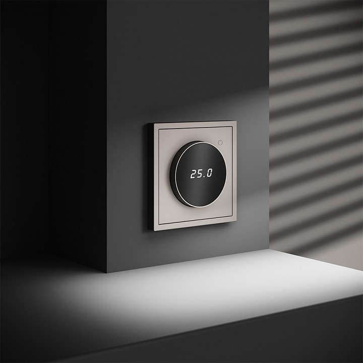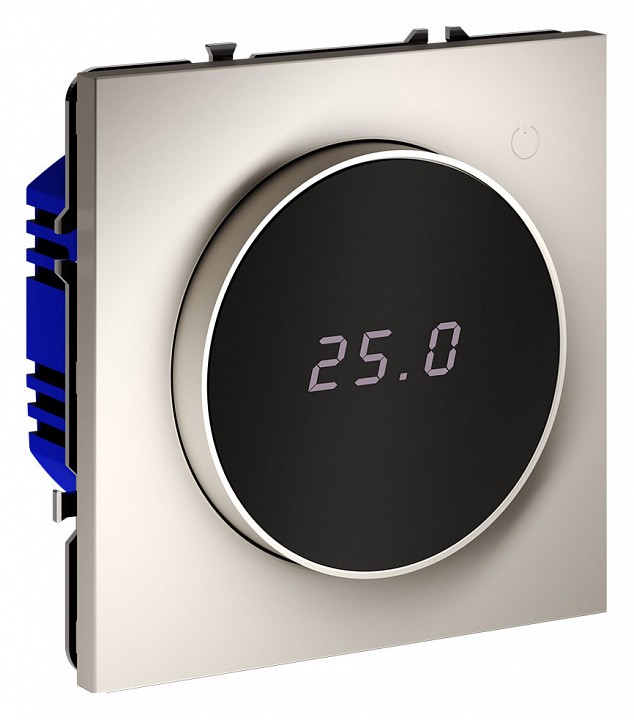 Конструктивные особенности. Терморегуляторы работают с любыми типами теплых полов и рассчитаны на нагрузку до 3500 Вт. Устройства оснащены светодиодной индикацией режима и дисплеем, на котором отображается температура поверхности пола. Красный индикатор — «подача питания на нагревательный кабель (идет процесс нагрева)», отсутствие индикации — «заданная температура достигнута». В течение 15 минут после нагрева терморегулятор переходит в интеллектуальный «спящий режим», уменьшая яркость подсветки цифр и сокращая энергопотребление. Регулировка осуществляется вращением панели управления. Терморегулятор поставляется в комплекте с механизмом из пластиковой накладки и датчиком температуры.