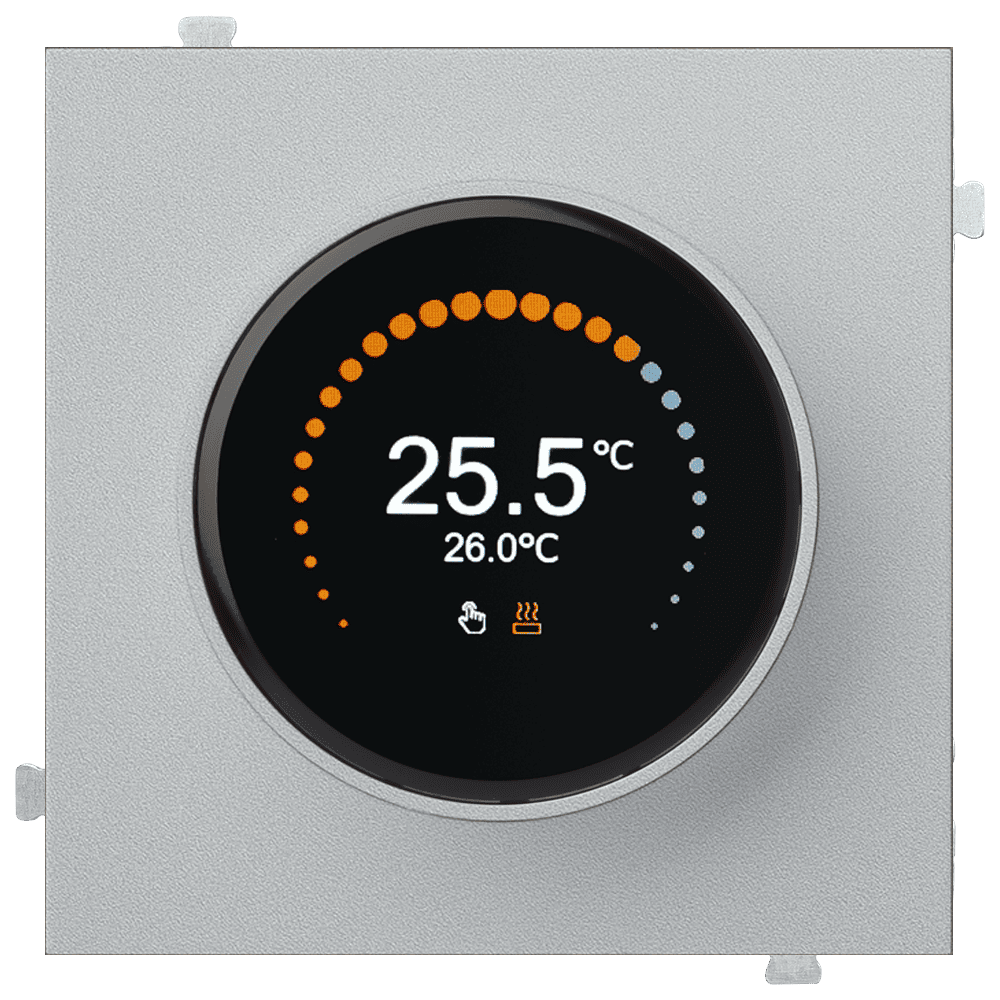 Термостат для теплого пола в цвете серебро, 250 В, 16 А, датчик теплого пола в комплекте. Устанавливается в стандартный подрозетник.