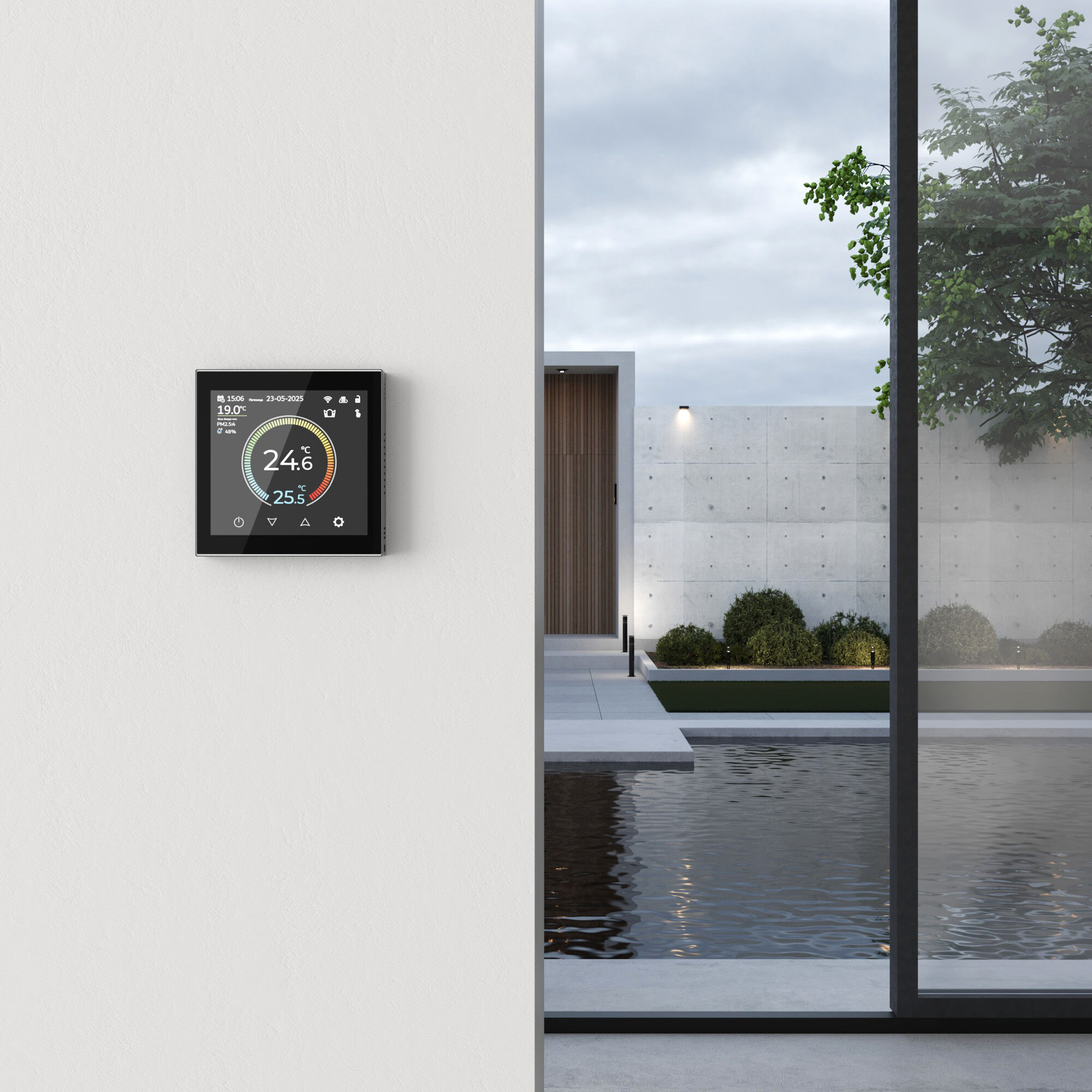 <p>Умный терморегулятор для систем обогрева и тёплого пола сочетает в себе премиальный дизайн, расширенный функционал и удобное управление.</p> <p><strong>Дизайн и экран</strong><br>Терморегулятор от Werkel получил стильный безрамочный корпус и сенсорный TFT-IPS-LCD дисплей с превосходной чувствительностью и широким углом обзора.</p> <p><strong>Удобство управления</strong><br>Все функции доступны прямо с экрана устройства— для управления не нужно открывать приложение. Интерфейс полностью русифицирован и интуитивно понятен. Среди встроенных функций:</p> <p>Выбор режимов работы терморегулятора: ручной, программируемый, отпуск<br>Обнаружение открытого окна и двери<br>Защита от перегрева и замерзания<br>Настройка режимов для встроенного и выносного датчиков температуры<br> </p> <p>На дисплее отображаются:</p> <p>Актуальная и заданная температура в помещении<br>Текущая дата и время<br>Погодные данные с улицы — для работы умных сценариев на основе метеоусловий</p> <p><br><strong>Поддержка голосовых помощников и удалённое управление</strong><br>Устройство совместимо с голосовыми ассистентами Алиса, Маруся и Салют. Управление возможно из любой точки мира через смартфон через собственное улучшенное мобильное приложение Minimir Home — нужен только доступ к интернету.</p> <p><strong>Преимущества терморегулятора Werkel</strong></p> <p>Современный сенсорный TFT-IPS-LCD дисплей с высокой точностью отклика<br>Полностью русифицированный интерфейс<br>Программирование и настройка прямо с устройства<br>Отображение погодных условий, календаря и времени<br>Точное измерение температуры в помещении (точность до 0,1 °C)<br>Совместимость с любыми системами тёплого пола и многими отопительными устройствами<br>Два датчика температуры: выносной и встраиваемый <br>Настройка работы по одному из датчиков или по двум одновременно<br>Работа при нестабильном напряжении (диапазон 90–240 В)<br>Интеграция с системой «Умный дом» через Wi-Fi и мобильный интернет<br><strong>Werkel — это управление климатом нового поколения:</strong><br>удобное, надёжное и стильное. Используйте экран, смартфон или голос — выбор за вами.</p>
