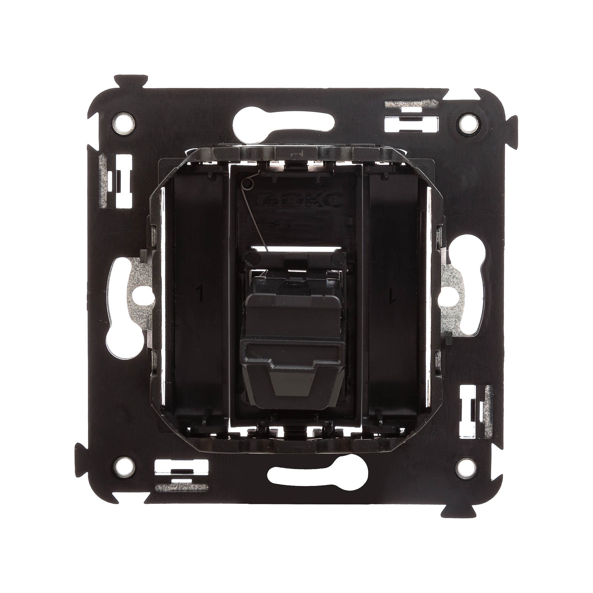 USB 2.0 розетка одиночная в стену. Предназначена для монтажа в подрозеточные коробки глубиной не менее 45 мм (код 59301). Используется в качестве информационной розетки для передачи сигнала (подключение проекторов, мониторов и др.). 2 модуля. Цвет: "Черный матовый".