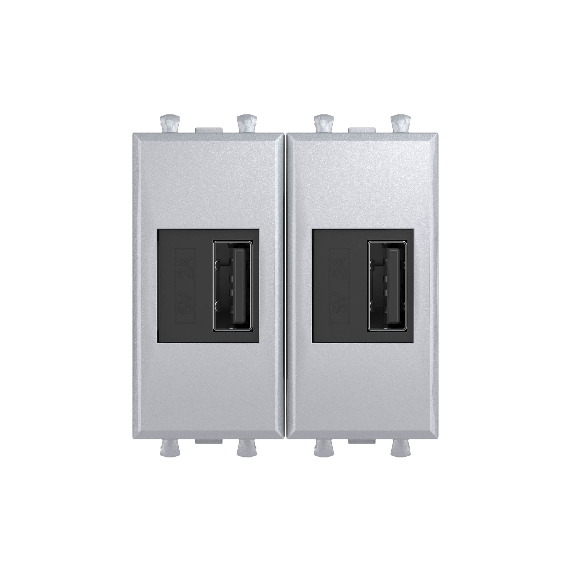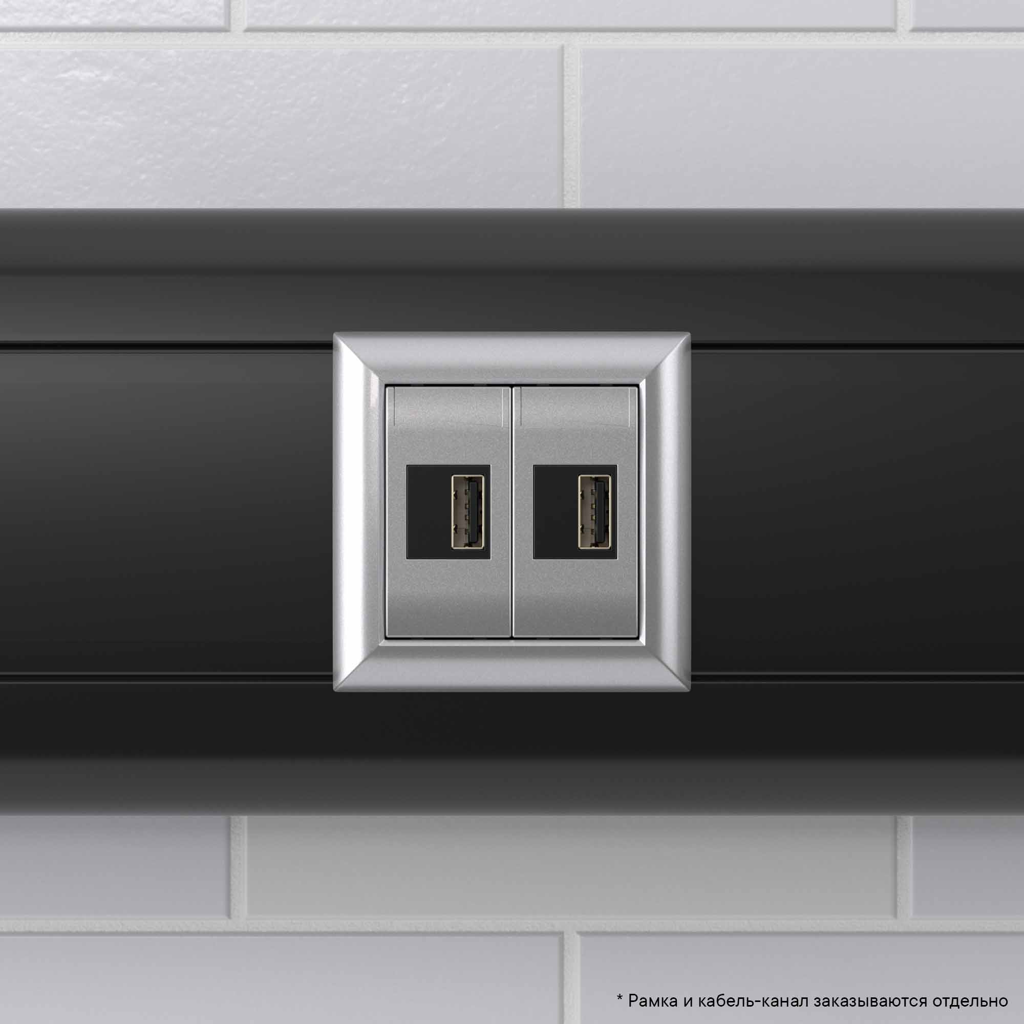 USB зарядное устройство модульное. Назначение: для монтажа в системы "In-liner Front" и "In-liner Aero" при помощи рамок-суппортов и каркасов "Avanti" (код 4400912 и т.д.); используется для подзарядки электронных гаджетов. Характеристики: винтовые зажимы; номинальное напряжение – 220 В; частота – 50–60 Гц; напряжение на выходе – 5 В; фиксация в подрозеточные коробки глубиной не менее 45 мм при помощи каркаса с лапками (код 4400802) и саморезов. Кол-во модулей: 2. Цвет: "Закаленная сталь"