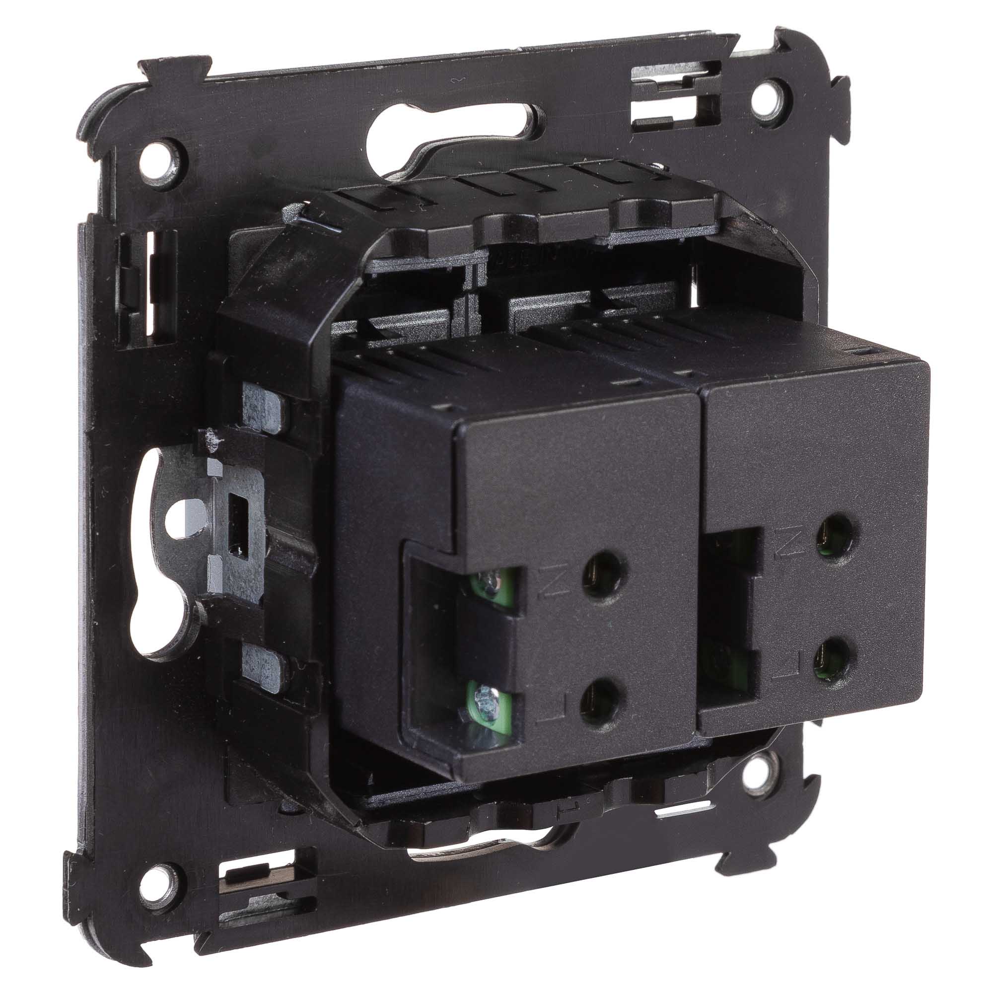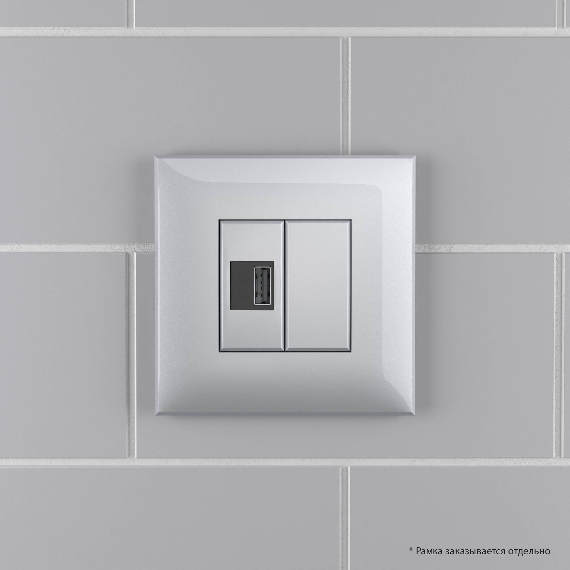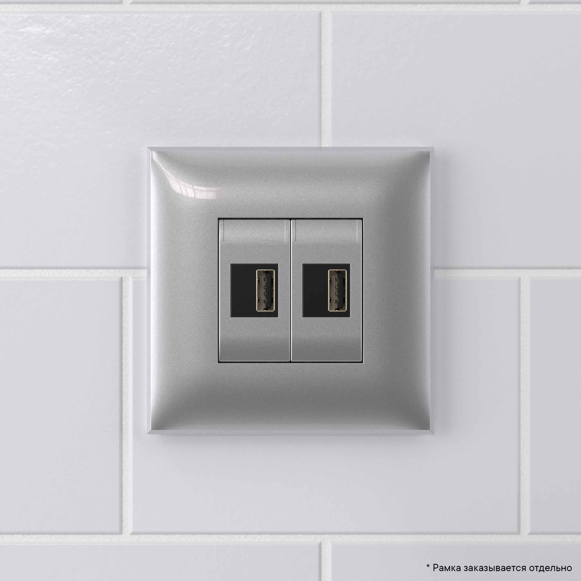 USB зарядное устройство в стену. Назначение: для монтажа в подрозеточные коробки глубиной не менее 45 мм (код 59301); используется для подзарядки электронных гаджетов. Характеристики: винтовые зажимы; номинальное напряжение – 220 В; частота – 50–60 Гц; напряжение на выходе – 5 В. Кол-во модулей: 2. Цвет: "Закаленная сталь"