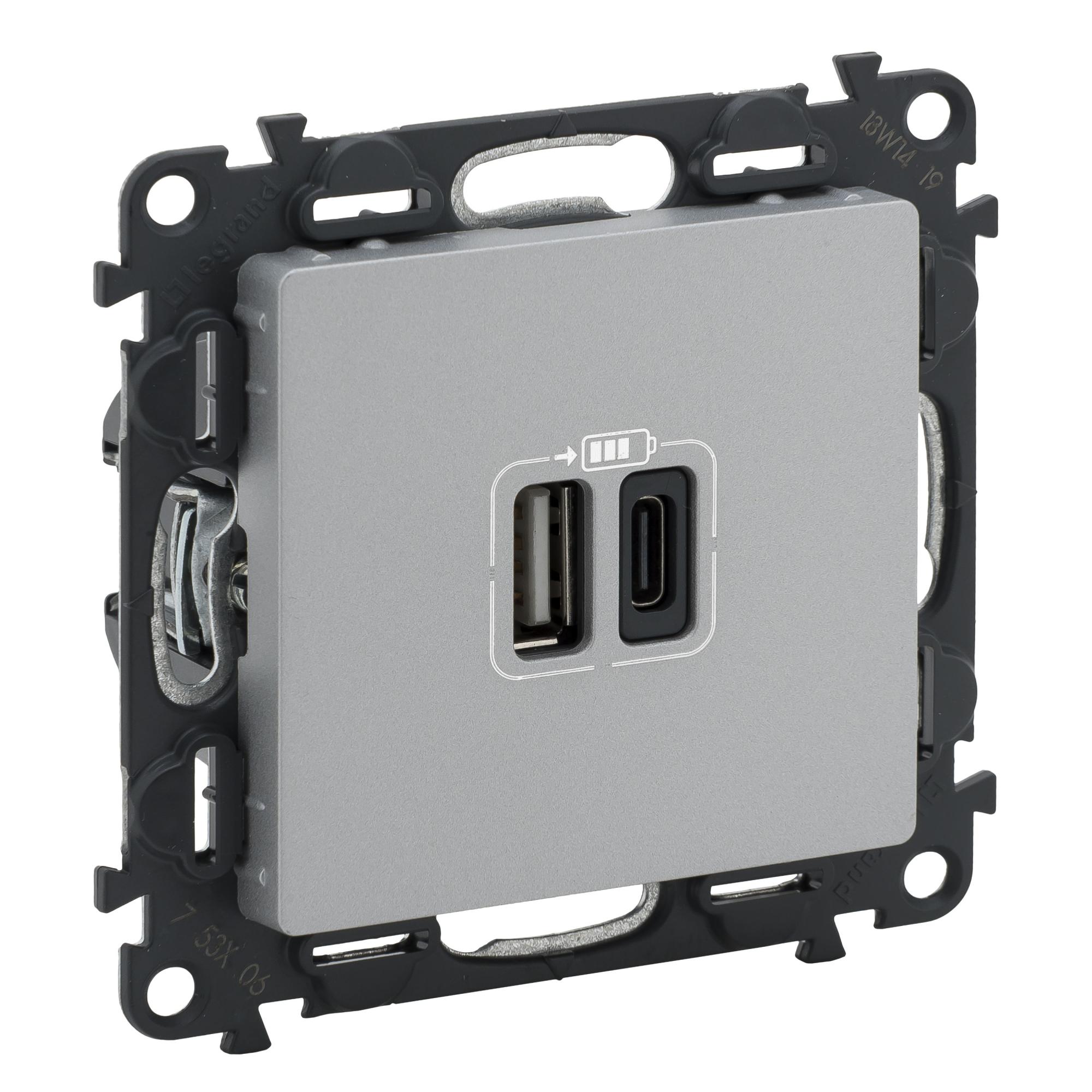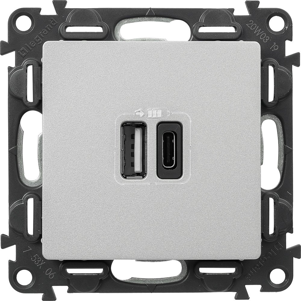 Legrand Valena LIFE, алюминий, зарядное устройство с USB разъемами A-C от производителя Legrand. Артикул производителя 753306.