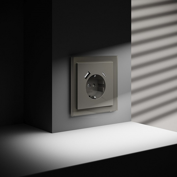 Розетка встраиваемая VOLTUM S70 с заземлением и защитными шторками, 16А, с USB, A+С, (шелк). Место установки. USB-розетки становятся все более распространенным не только в офисах, но и дома, так как значительно упрощают зарядку гаджетов. Их установка экономит место (массивные блоки питания больше не понадобятся), они органично смотрятся в технологичном интерьере.