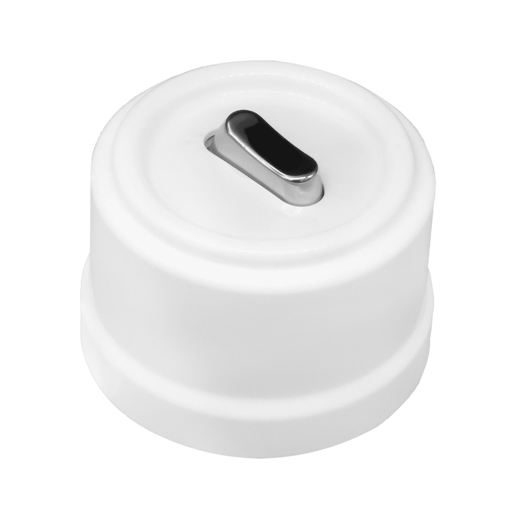 BIRONI Лизетта Пластик Белый Выключатель 1-кл (клавишный), ручка Серебро от производителя BIRONI. Артикул производителя B1-220-21-S.