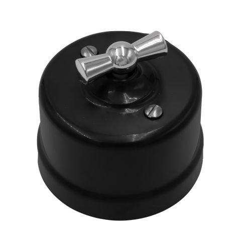 BIRONI Лизетта Пластик Черный Выключатель 1-кл, ручка Серебро от производителя BIRONI. Артикул производителя B1-200-23-S.