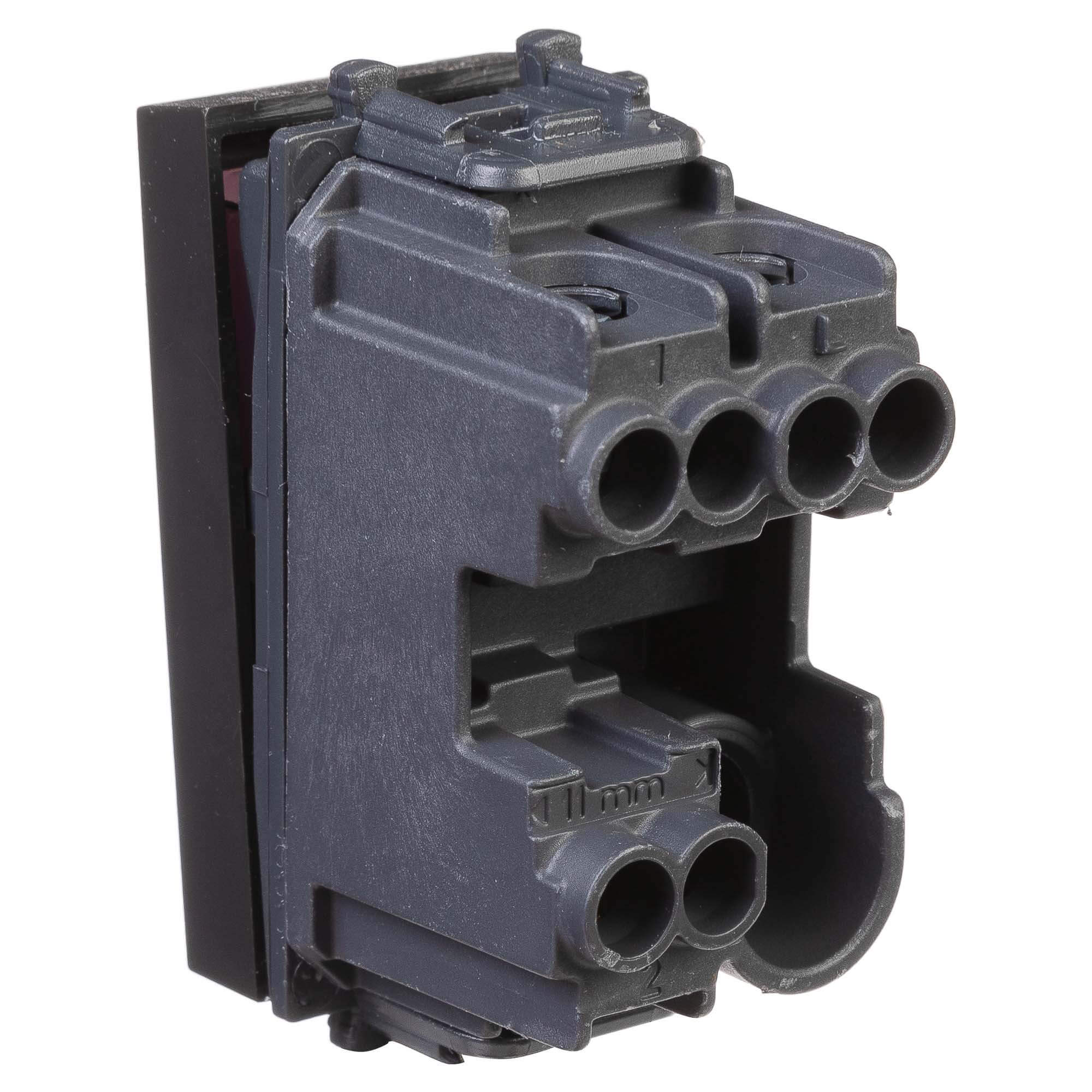 Переключатель модульный серии "Avanti". Предназначен для монтажа в системы "In-liner Front" и "In-liner Aero" при помощи рамок-суппортов и каркасов "Avanti" (код 4400912 и т.д.). Используется для включения/выключения освещения из двух мест. Диаметр отверстий для ввода кабелей – 3 мм (по 2 отверстия на одну клемму); винтовые зажимы; шаблон для зачистки кабеля – 11 мм; номинальное напряжение – 230 В. Фиксация производится в подрозеточные коробки при помощи каркаса с лапками (код 4400802) и саморезов. 1 модуль. Цвет: "Черный матовый".