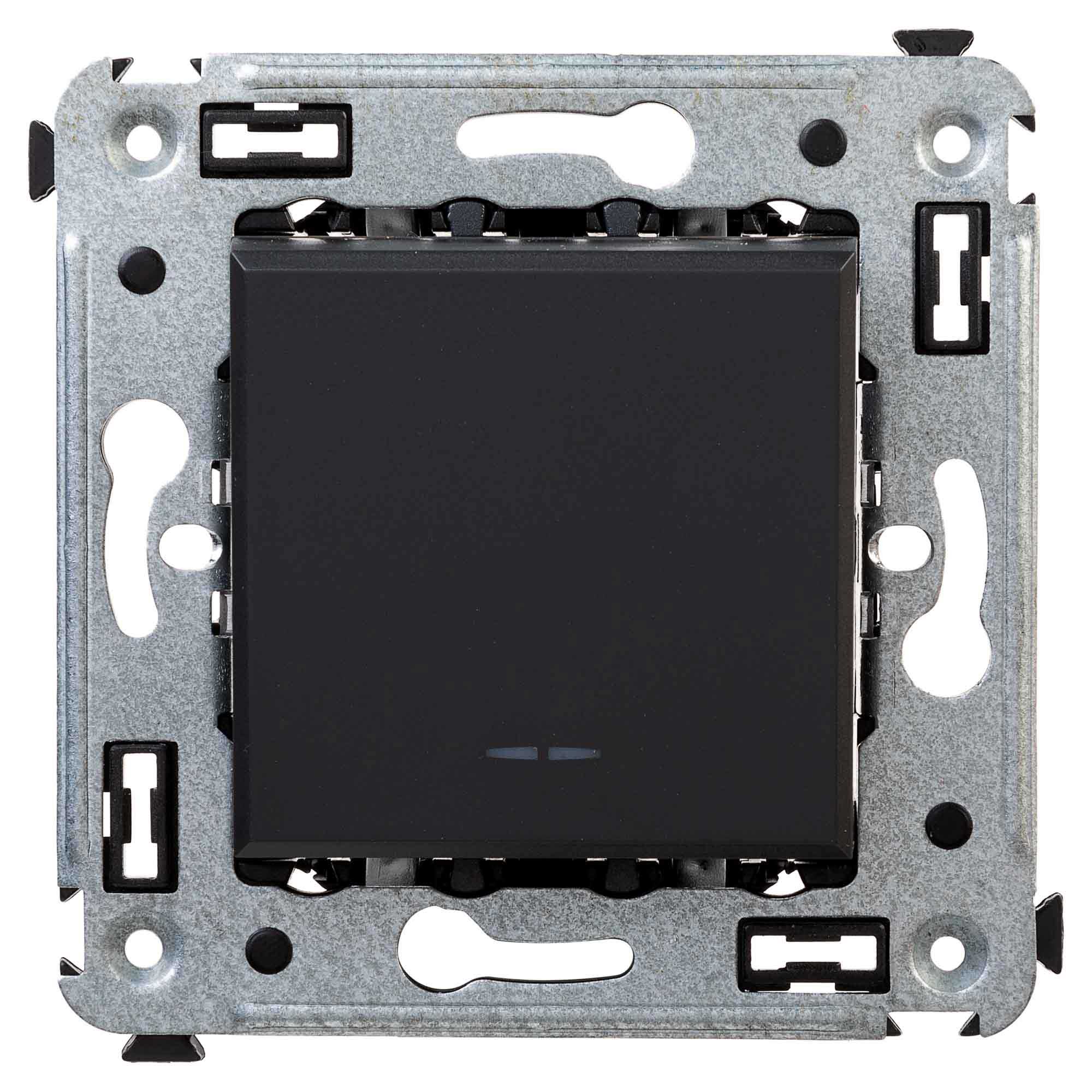 Переключатель одноклавишный в стену серии "Avanti". Предназначен для монтажа в подрозеточные коробки (код 59301). Используется для включения/выключения освещения из двух мест. Диаметр отверстий для ввода кабелей – 3 мм (по 2 отверстия на одну клемму); винтовые зажимы; шаблон для зачистки кабеля – 11 мм. Номинальный ток – 16 A. Номинальное напряжение – 230 В. Фиксация производится в подрозеточную коробку при помощи саморезов. 2 модуля. Цвет: "Черный матовый".