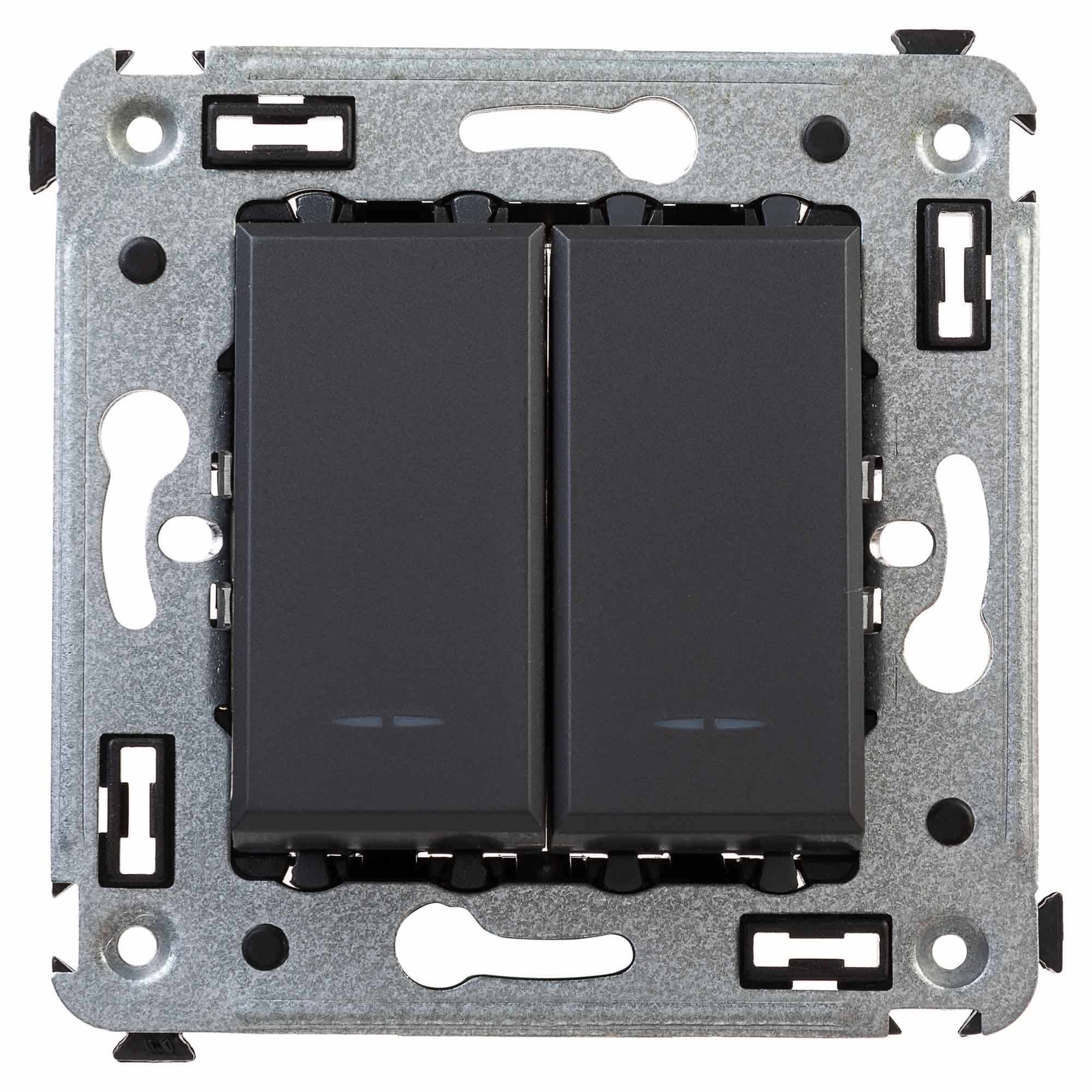 Двухклавишный выключатель производства ДКС используется для того, чтобы из одной точки управлять двумя контурами освещения (в одном или разных электроприборах). Выключатель применяется для скрытого монтажа в стену. Номинальное напряжение – 230 В, номинальный ток – 16 А. Пластиковые части электроустановочного изделия имеют цвет "Черный матовый"
