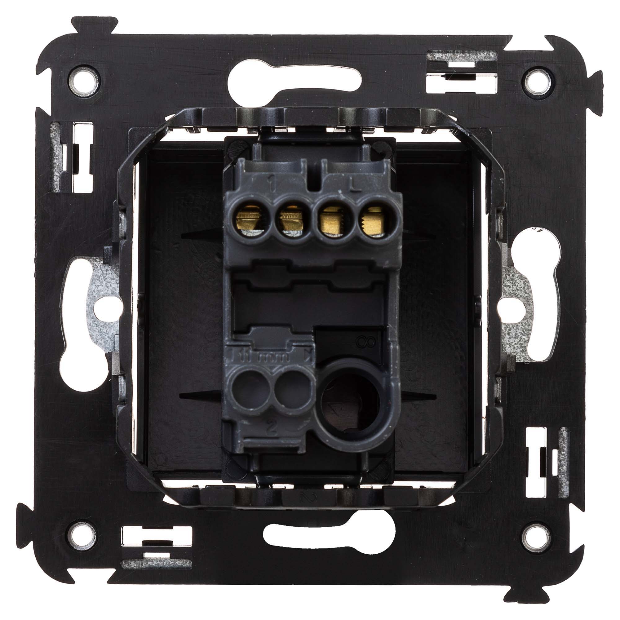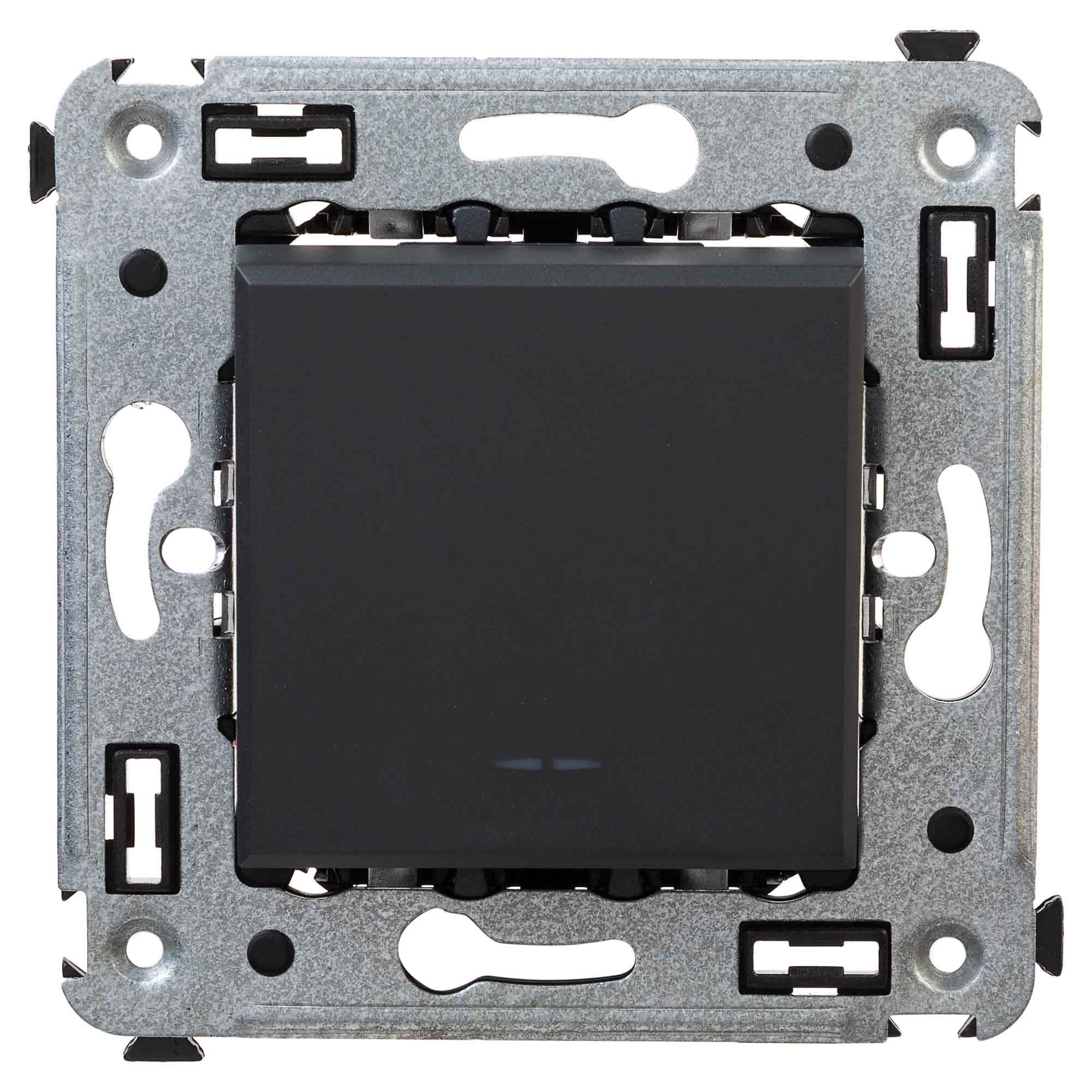 Выключатель однополюсный для монтажа в стену серии "Avanti". Предназначен для монтажа в подрозеточные коробки (код 59301), включения/выключения освещения. Диаметр отверстий для ввода кабелей – 3 мм (по 2 отверстия на одну клемму); винтовые зажимы; фиксация в подрозеточную коробку при помощи саморезов. Шаблон для зачистки кабеля – 11 мм; номинальный ток – 16 A; номинальное напряжение – 230 В. 2 модуля. Цвет: "Черный матовый".