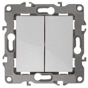Двойной выключатель "ЭРА" выполнен из прочного пластика, контакты бронзовые. Изделие просто в установке, надежно в эксплуатации. Выключатель имеет специальные фиксаторы, которые не дают ему смещаться как при монтаже, так и в процессе эксплуатации. Автоматические зажимы кабеля обеспечивают быстрый и надежный монтаж изделия к электросети без отвертки и не требуют обслуживания в отличие от винтовых зажимов. УВАЖАЕМЫЕ КЛИЕНТЫ. Обращаем ваше внимание на тот факт, что монтажные лапки в комплект не входят.