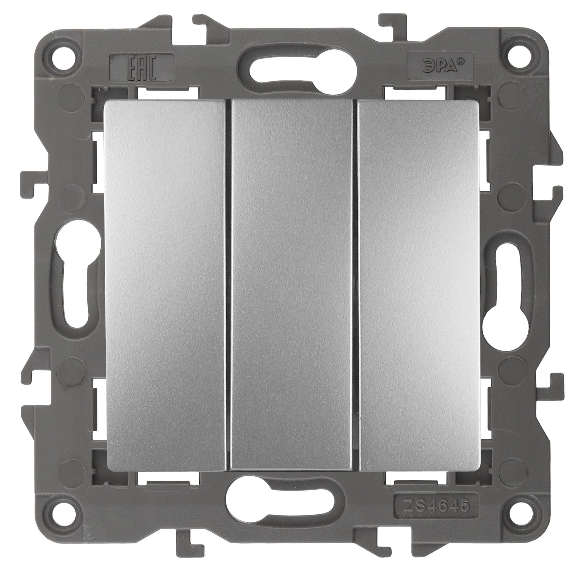 Выключатель тройной, 10АХ-250В, Эра Elegance, алюминий