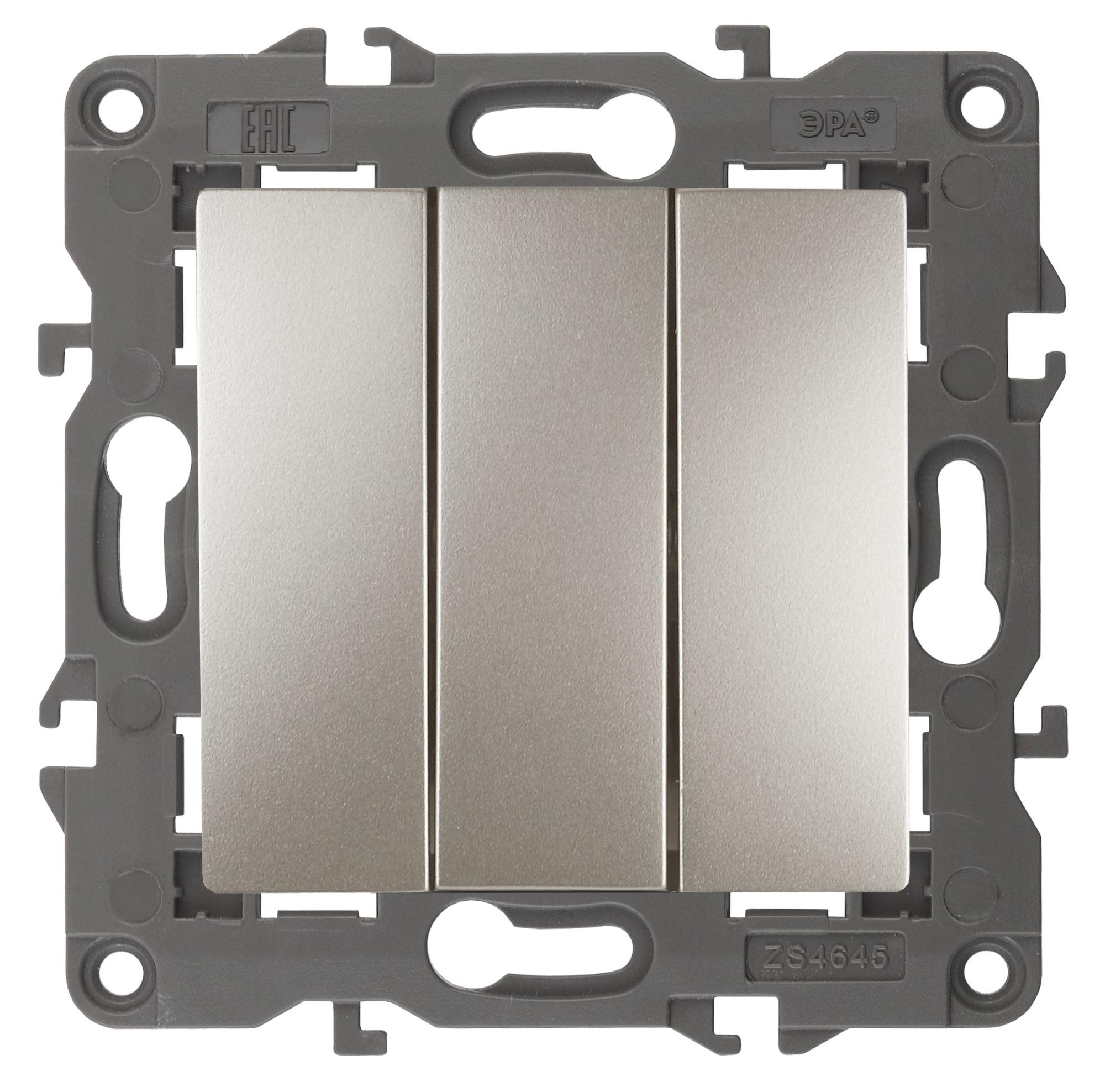Выключатель тройной, 10АХ-250В, Эра Elegance, шампань
